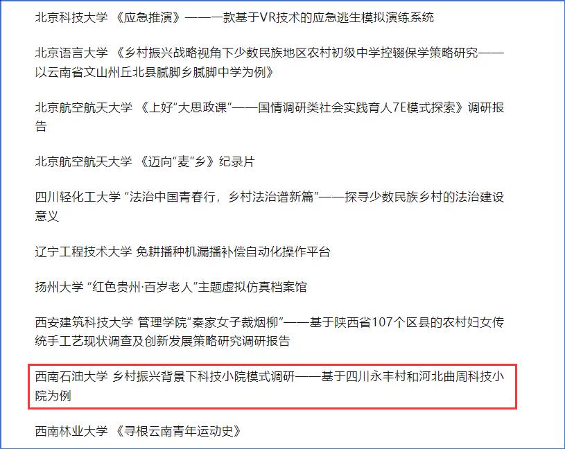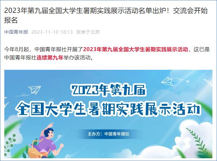 2023年11月10日中国青年报公布了第九届全国大学生暑期实践展示活动全国大学生暑期实践团队TOP100,全国大学生暑期实践项目TOP100和全国大学生暑期实践成果TOP100。我院指导的“寻迹乡村 行稳致远”实践团撰写的调研报告《乡村振兴背景下科技小院模式调研——基于四川永丰村和河北曲周科技小院为例》获评全国大学生暑期实践成果TOP100。