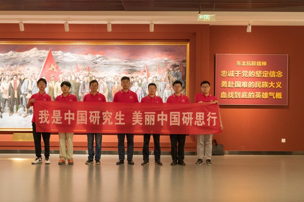 图2: 实践队员在《胜利之路》巨型浮雕前合影留念 参观过程中,实践队员深刻认识到日本军国主义武力侵略中国东北、炮制傀儡政权、推行法西斯殖民统治的罪行,深刻领悟到东北人民不屈不挠的民族精神,以及中国共产党领导东北人民的抗日战争和中华民族同仇敌忾,最后取得世界反法西斯战争最终胜利的这一伟大壮举。