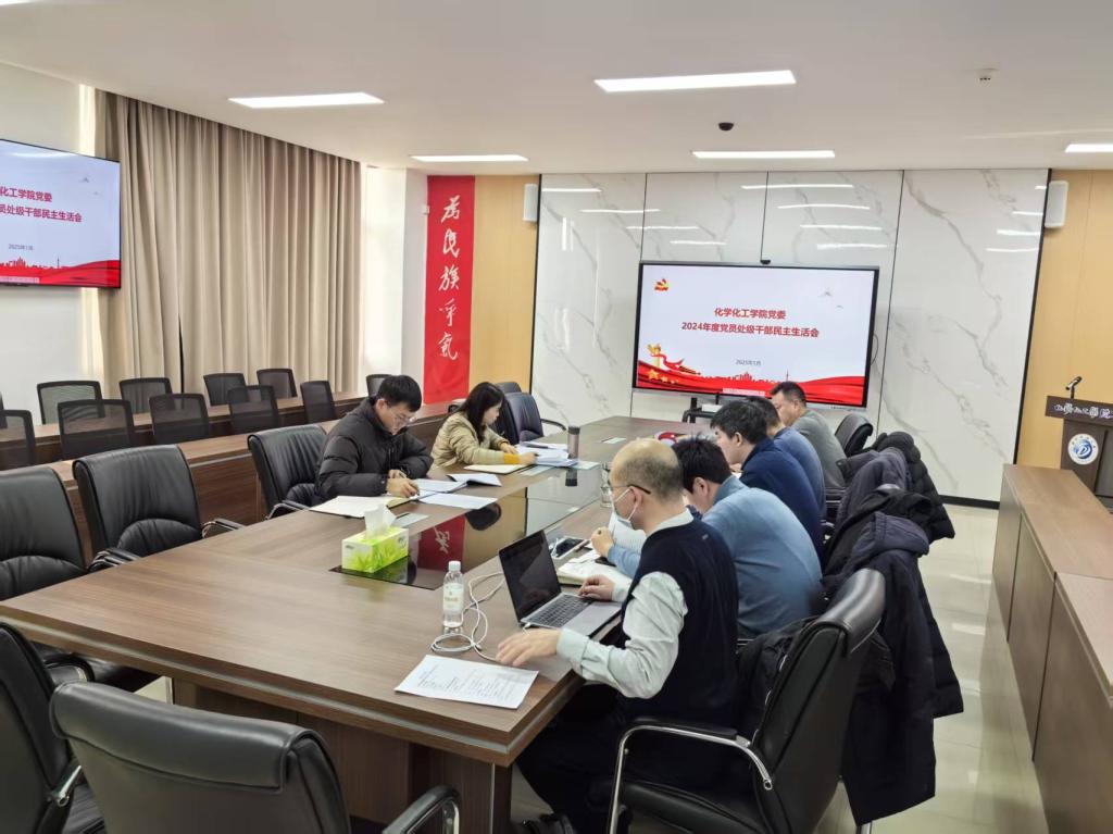 1月13日下午,按照学校党委相关要求,化学化工学院党委召开2024年度处级领导干部民主生活会,党委组织部副部长郭龙到会指导。学院党委领导班子全体成员参加会议,会议由学院党委书记张敏主持。 学院领导班子聚焦民主生活会主题,会前精心组织学习研讨、广泛征求意见、深入开展谈心谈话、结合典型案例剖析并认真撰写相关材料。 张敏通报了上年度民主生活会查摆问题整改落实情况,并代表班子作对照检查,重点从四个“带头”方面查找问题和不足,结合典型案例进行剖析,深刻查找问题根源,并有针对性地提出整改措施和努力方向。领导班子对照检查后,每位班子成员聚焦问题,把自己摆进去、把职责摆进去、把工作摆进去,逐一开展自我批评。自我批评后,其他班子成员对其逐一开展批评。班子成员紧密联系思想工作具体事例,既对存在的问题直言不讳、畅所欲言,又坚持了实事求是、坦诚相待;既交流了思想、增进了团结,又指出了问题、明确了改进方向。 郭龙在会上进行了讲话,他对此次民主生活会给予充分肯定,认为会议准备充分、程序规范,领导班子成员能够紧扣主题,深入查摆问题,开展严肃认真的批评与自我批评,体现了较高的政治站位和党性觉悟。同时,也对学院班子提出了进一步要求,强调要坚持强化理论学习,筑牢理想信念之基,增强责任意识,勇于担当作为。坚持问题导向,聚焦查摆的问题,建立台账,切实抓好整改落实,不断深化拓展党纪学习教育成果,推动学院高质量发展。 最后,张敏作表态发言,表示领导班子将坚决贯彻落实学校党委要求,做好民主生活会“后半篇文章”,进一步加强自身建设,提升履职能力,持续深化理论学习,切实抓好问题整改,强化责任担当意识,加强党风廉政建设,带领学院师生在学科建设、育人育才、科学研究等方面不断取得新突破。