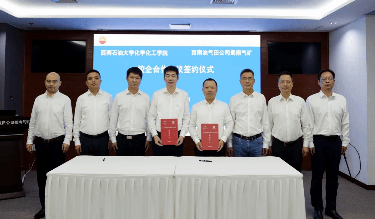 9月23日,化学化工学院工作组赴中国石油集团公司西南油气田分公司蜀南气矿调研交流,双方举行座谈并签订校企合作协议,揭牌“油气与新能源融合创新中心”。化学化工学院党委书记蒲冠州,院长段明,党委副书记章志华,副院长唐鋆磊及部分教师代表,蜀南气矿矿长、党委副书记杜强,党委书记、工会主席、副矿长杨春等技术管理骨干代表参会。 座谈中,双方就合作方向与落地路径达成高度共识。化学化工学院段明表示将以此次签约为契机,打造校企协同典型范例,推动油田企业与高校在技术攻关、人才培养领域同向发力、携手前行;蒲冠州指出此次签约是双方深化产学研融合的务实之举,对服务国家能源安全、助力西南油气产业高质量发展意义重大,学院将迅速组建联合领导小组,开放科研资源,与企业实现互利共赢、协同发展。蜀南气矿杨春高度肯定化学化工学院在油田化学、新能源领域的办学及科研成就,明确蜀南气矿将全力推进并支持与化学化工学院的深度合作,通过优势互补,实现协同创新与人才共育;杜强则围绕合作落地提出具体举措,明确将建立校企定期交流、双方定向培养培训、科研联合攻关三大合作机制,推动关键技术攻关和成果就地转化,助力蜀南气矿安全高效、绿色低碳高质量发展。 会谈结束后,段明与杜强分别代表校企双方签订了校企合作协议。根据协议,双方将重点开展三方面合作:一是人才培养,共建实践实训基地与研究生工作站,共办校企技术论坛,互邀专家授课交流,定制培养专业人才;二是科研攻关,组建联合团队申报重大项目,共享仪器设备与科技信息,优先开展专项科研合作;三是机制保障,成立联合领导小组,建立领导定期会晤与年度科技交流制度,清单化推进项目落地。 本次校企合作将充分发挥双方优势,实现互补。通过协议的签署,双方将推动技术研发与实际应用的深度融合,构建“优势互补、协同攻关、成果共享”的合作新模式,实现校企共赢,为国家能源安全贡献力量。