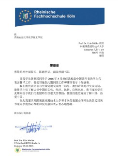 “一名工科生,能有不输外语专业学生的翻译素养,感谢贵院培养出如此优秀的学生。”近日,我院收到了来自德国科隆莱茵应用技术大学的表扬信。信中对黄书瑾同学在翻译期间对其提供的帮助表示了由衷的感谢。