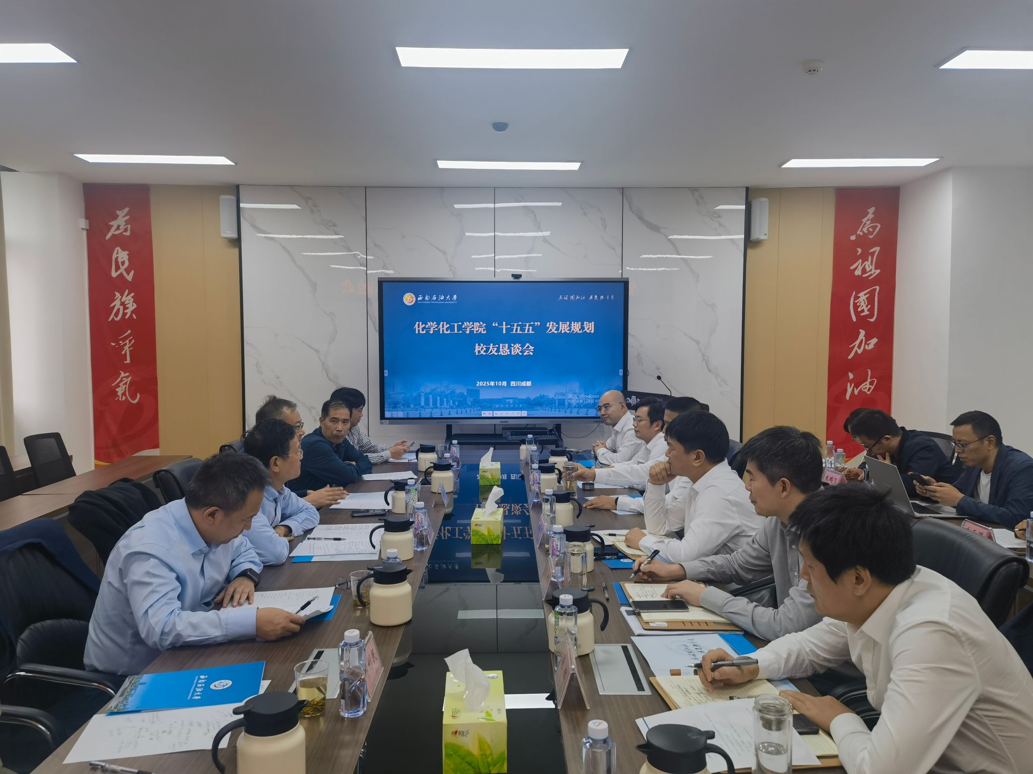 为进一步做好学院“十五五”事业发展规划编制工作,提高规划编制的前瞻性、科学性和民主性,全面提升人才培养质量,10月18日,在学校67周年校庆前夕,化工院召开“十五五”发展规划校友恳谈会。 会议邀请部分来自科研院所、高等学校和行业企业的校友代表返校座谈,为学院发展建言献策。学院全体班子成员、各教研室负责人、实验中心负责人及教师代表参加会议。 会上,校友代表结合自身经历与工作经验,围绕服务区域经济社会发展需要、推进学院“十五五”高质量内涵式发展,从学科专业建设、科学研究与成果转化、提升人才培养质量等方面广泛提出了宝贵建议。校友们提到,希望学院发展能紧密对接国家能源安全及发展新质生产力等重大战略需求,进一步优化学科方向与科研布局,与企业、行业紧密协作,共同设计课程体系、创新实践教学模式、完善人才培养机制。 院党委书记蒲冠州代表学院对校友们返校表示热烈欢迎,希望全体校友能一如既往关心支持母院改革发展,积极参与学院教育教学和人才培养过程,携手共育德智体美劳全面发展的时代新人。 学院党委副书记、院长段明从学科专业、平台建设、师资队伍、科学研究、学生培养等方面汇报了“十四五”期间学院办学成效,并就未来五年的发展方向与目标规划作了简要介绍。 教师代表鲁红升、王静懿、唐鋆磊、张辉、陈永东分别汇报了团队(个人)研究工作情况。