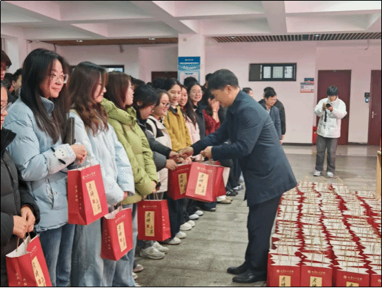 图2:学院领导为考研学生发放“考研加油包”
