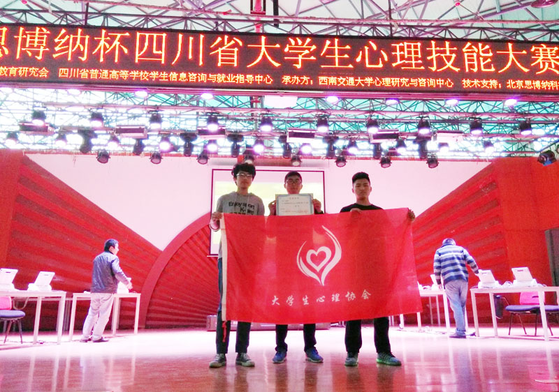 “思博纳”杯首届四川省大学生心理技能大赛竞赛于2016年10月29日在西南交通大学举行。经过激烈角逐,由我院学生陈轶文、电信院学生张家麟组成的团队从30支参赛队伍中脱颖而出,以第八名的成绩闯入决赛。最终总分位列第三,荣获比赛二等奖(仅次于西南交大、成都理工),为学校赢得了荣誉。