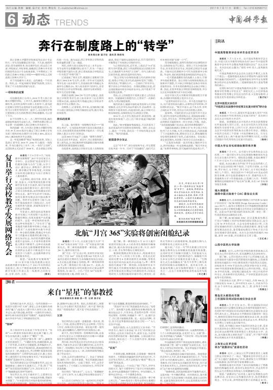 7月11日,中国科学报大学周刊第6版,以《来自“星星”的邹教授》为题,对我校化工院邹长军教授的优秀事迹进行报道。 报道说,在西南石油大学,有这么一位传奇教授——他是学生眼中的“大神”,课堂上总有化腐朽为神奇的“魔力”;他是女儿眼中别人家的父亲,爱生多过女;他不修边幅,却俘获一大群的学生粉丝,被学生称为来自星星的“邹教授”。(学校宣传部 曹正) 报道链接:http://news.sciencenet.cn/sbhtmlnews/2017/7/325359.shtm