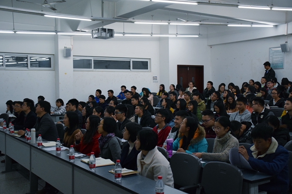 11月22日晚,我院邀请到学校十九大精神宣讲团成员、学生工作部(研究生工作部)(处)部(处)长蒲勇向学院全体学工教师、全体学生党员、党员服务站成员作了“深入学习贯彻党的十九大精神,增强责任担当,不辱历史使命,为实现中华民族伟大复兴中国梦而努力奋斗”为主题的十九大精神宣传报告。 蒲勇从五年新成就、方位新判断、理论新成果、发展新征程、矛盾新变化、时代新使命、呼唤新作为7个方面,对十九大报告的内容进行了系统阐释和深入解读。他在宣讲最后对同学们提出了三点希望:胸怀理想信念,自觉走新时代中国特色社会主义道路;勤于学习实践,努力锤炼服务祖国和人民的真本领;善于创新创业,努力成为创新驱动发展的生力军。 学院党员公寓服务站负责人曾雅清表示,通过蒲部长通俗朴实的语言、旁征博引的讲解,自己更加深入地理解了党的十九大精神,也将把十九大精神落实到日常的学习工作中。 学院党委副书记蒲冠州在会后表示,认真学习宣传贯彻党的十九大精神,是当前和今后一个时期学校和我院的首要政治任务。我们要深刻领会党的十九大精神实质,自觉以党的十九大精神武装头脑、指导实践、推动工作。 自十九大召开至今,化学化工学院通过“线上线下齐发声”的模式,在全院师生中积极进行十九大精神宣讲:线上通过《先锋集结号》专栏推送《关于十九大报告,你必须知道的“关键词”》等文章,微博直播“不忘初心,方得始终——十九大学习分享交流会”;线下以学生党员公寓服务站暨先锋集结工作室为宣传阵地,在学生中开展十九大精神宣讲会等,助力师生深入了解十九大精神内涵及实质。