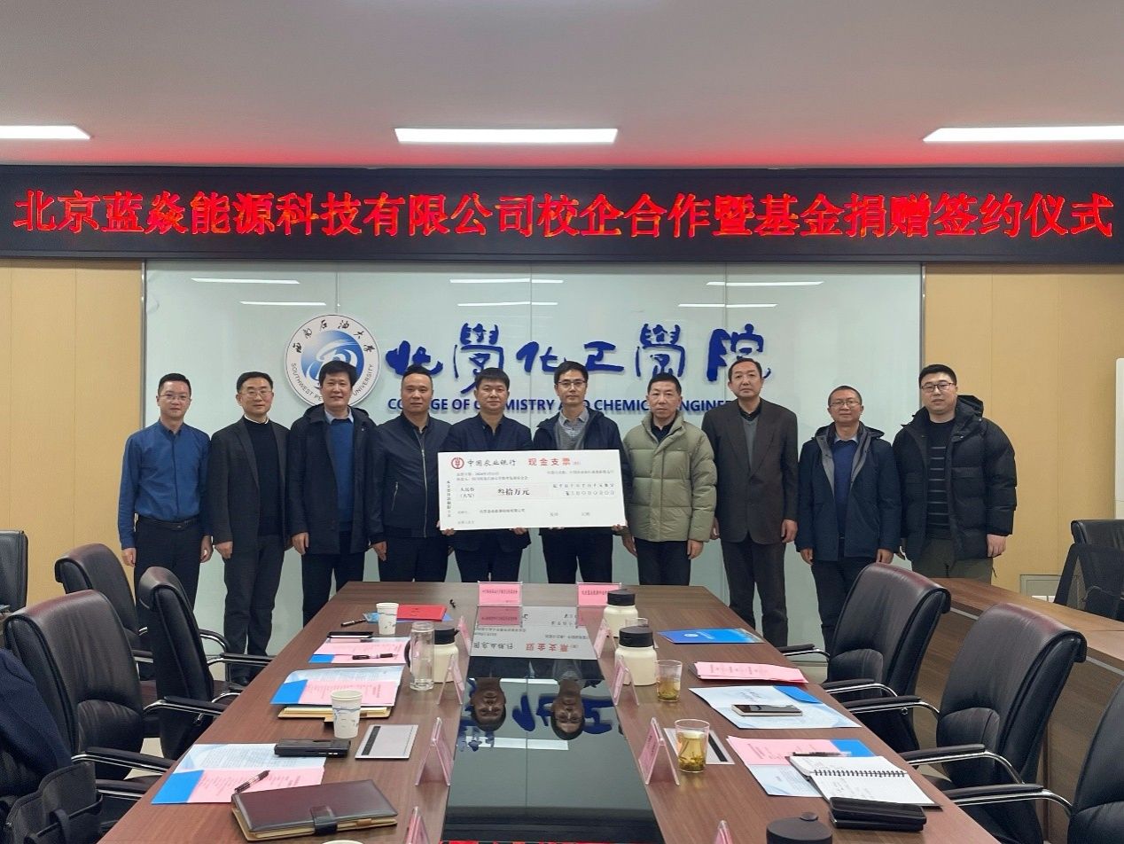 1月13日,北京蓝焱能源科技有限公司总经理、应用化学专业1999级校友何炜率队来校交流访问,捐赠30万元设立“北京蓝焱能源科技基金”。 化工院党委书记蒲冠州代表全院师生对何炜校友一行表示热烈欢迎,对校友和公司的慷慨捐赠与大力支持致以诚挚感谢。蒲冠州说,学院始终以服务国家能源化工战略需求为导向,不断加强学科建设、教学科研、人才培养,将严格规范基金管理与使用,让每一笔资金都成为支持学生成长成才的“助推器”。 何炜深情回顾了在母校的求学时光,感谢母校的悉心培养为自己的职业发展奠定了坚实基础。他表示,此次设立专项基金只是校企合作的起点,未来希望与母校各个方面开展更深层次、更宽领域的合作,实现优势互补、互利共赢,共同为青年师生成长保驾护航,在保障国家能源安全战略中书写“西南石大化工人”的新篇章。 座谈会上,化工院院长、党委副书记张辉代表学校与北京蓝焱能源科技有限公司签订校企合作协议。协议签订后,双方将在联合技术研发与攻关、创新平台共建共享、科技成果转化与产业化、人才培养与交流等方面持续强化合作,促进产学研用深度融合。 学校党政办公室(校地合作办公室)副主任陈刚代表四川西南石油大学教育发展基金会与公司签订基金捐赠协议。根据协议,北京蓝焱能源科技有限公司自2026年起将连续三年每年向学校捐赠人民币10万元,支持化工院人才培养和师生综合发展。其中,每年5万元设立“蓝焱能源·化工先锋奖励基金”,用于评选表彰化学化工学院突出学生个人或团队,每年5万元设立“蓝焱能源·师生科技活动基金”,资助师生参加各类课外学术科技和创新创业竞赛。 校企合作暨基金捐赠签约仪式前,双方还进行了“科研能力清单”“人才培养清单”“现场需求清单”对接交流,针对清单中的重合点与潜在合作方向深入探讨,明确了初步合作意向与下一步对接计划。 北京蓝焱能源科技有限公司总工程师田荣剑、技术部首席专家吴彬、西南区域负责人陈松、项目总监王德明,化工院副院长陈永东、学院行政办公室、团委、相关科研团队负责人等参加活动。