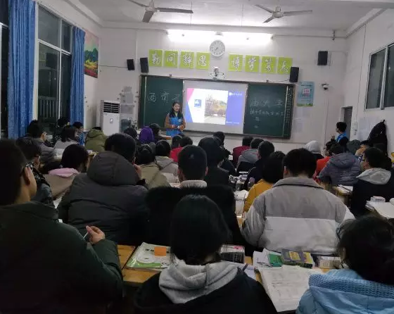 2018年寒假期间,化工院学子响应学校号召,积极报名参加“荣归母校,青春分享”志愿活动。最终,学院共有69名学生通过层层选拔成为志愿者,他们分赴广东、河北、黑龙江等7个省份的15所重点中学开展了多场青春分享会,累计3000余名高中生参与。 同学们返回高中母校讲述自己的石大故事,分享自己的成长经历,宣传“为祖国加油,为民族争气”的石大精神,为高中生加油打气。化学工程与工艺2017级王俊梅、周杰等同学组成的“蓝精灵”团队赶赴我校优质生源地——南充高级中学潆溪校区开展主题宣讲会,在活动中,志愿者播放了我校宣传视频,介绍了我校的发展历史、显著成就、基础设施、校园环境及文化氛围,同时,针对同学们询问较多的本硕博连读计划、海外联合培养项目等进行了讲解。 由安全工程2017级袁亮等同学组成的“西柚邛崃”团队则到邛崃市第一中学校、高埂中学、平乐中学三所中学详细讲解我校的招生政策,并分别从自己所学专业出发介绍化工院综合发展。在祖国最北方,由应用化学2017级专业陈盟盟等同学组建的“寸心春晖”队伍在黑龙江省黑河市通过“成都”、“石大”以及“未来”三个部分向农垦九三管理局第一中学的学子进行了分享。成都的风景名胜与特色小吃,我校的校园环境及文化氛围,双一流建设及大师名家,无不深深吸引着广大学子。 “我爱我的大学,如同我爱我的高中母校,我们在西南石油等你!”这是志愿者们向学弟学妹发出的邀请。参加了本次活动的高中学生纷纷表示,通过学长学姐的生动讲述,缓解了自己备考中的紧张情绪,增进了对西南石油大学的了解,让自己对大学生活充满了期待和憧憬。 图一 志愿者开展宣讲活动合影 图二 志愿者在高中班级开展宣讲活动 图三 志愿者解答高中学生问题 (审核:陈刚)