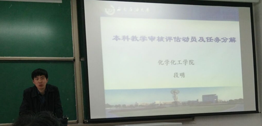 为扎实推进本科教学审核评估工作的具体实施,顺利完成今年学院的重点任务。2018年3月29日下午,化学化工学院在明德楼A303召开了全院本科教学审核评估动员大会,本次大会由学院院长段明主持并做主题报告,学院党委书记王兵、副书记陈刚、副院长王林元、工业危废研究院院长刘宇程等出席会议。 院长段明向全院教职工介绍了本科教学审核评估的背景,阐述了审核评估坚持“以评促建、以评促改、以评促管、评建结合、重在建设”的方针;突出内涵建设,突出特色发展;强化办学合理定位,强化人才培养中心地位,强化质量保障体系建设,不断提高人才培养质量的内涵。对学院现有问题、发展方向做了梳理,指出学院要强化内涵建设、明确办学方向、建章立制,提高人才培养质量。强调审核评估是对学校人才培养质量的一次全面检验,关乎我院的生存发展。并以以评促建为工作重心,对接下来的工作做了任务细化、人员安排、时间节点等具体安排和部署。他希望全体教职工高度重视,各施其责,按照评估要素、要点的要求完善自评报告、质量报告、教学基本状态数据分析报告以及评估汇报材料等关键材料,尽全力保质保量的按时完成各项阶段性工作。随后,教学办公室主任董军对教学评估所需材料及整改要求进行了讲解。 最后,学院党委书记王兵对本科教学审核评估工作提出了总体要求,强调审核评估必须真正从思想理念上加深认识,回归教学本位,真正在行动上组织落实,人人参与,认真细致做好本职工作,认真对待学生、认真对待课堂,切实把人才培养的根本任务落实好,高标准完成预评估材料的准备工作和迎接专家进校听、看、说、证的各项工作。(文/陈永东、谢娜 图/谢娜)