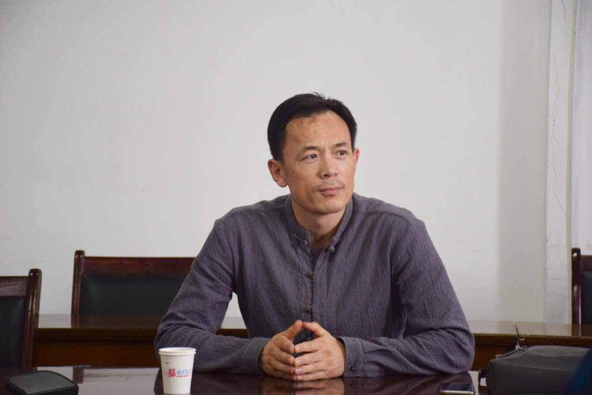 图1:申钊开展讲座 图2:申钊与参会老师进行交流