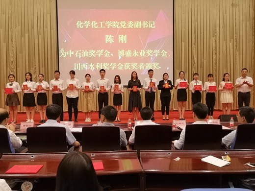 5月18日晚,化工院在图书馆学术报告厅举行2016-2017学年学生奖学金颁奖典礼暨优秀毕业生成长事迹报告会。学工部(研工部)副部长张浩,化工院党委书记王兵、院长段明、党委副书记陈刚、副院长王林元、副院长唐鋆磊,工业危废处置与资源化利用研究院院长刘宇程作为颁奖嘉宾出席活动。 陈刚宣读了表彰决定。刘宇程为优秀学生奖学金获奖代表颁奖;唐鋆磊为奋进奖学金获奖者颁奖;王林元为四川光亚奖学金、威沃敦化工奖学金获奖者颁奖;陈刚为中石油奖学金、博盛永业奖学金、川西水利奖学金获奖者颁奖。随后,张浩为校长奖学金、笃学奖学金获奖者颁奖;段明为国家励志奖学金获奖者颁奖;最后,王兵为优秀毕业生获奖代表颁奖。 段明在颁奖仪式后发表了讲话,他首先向获奖同学表示祝贺,并向全院学子提出三点希望:一是端正态度,勤奋学习。他希望同学们能够做到严格自律,上课不迟到、不早退,课中认真听讲,全程无手机,课下利用好时间,不沉迷网络游戏,走出寝室,走进图书馆、走进实验室、多参加课外活动和体育锻炼。在学习中强化专业技能和本领,在活动汇总提升综合素质和能力。二是明确目标,坚定信念。段明认为,只有做到目标明确,理想坚定、信念执着,才能在仰望天空的同时,脚踏实地,把目标落实到行动上,知行合一。三是明德修身,德才兼备。他表示,正确的人生观、世界观、价值观与良好的品质、品行、品德是走向成功的灯塔,充满魅力的人格,极具潜力的志向,是帮助学生笃定理想,踏实前进的繁星,他希望同学们在今后的求学道路上,将国之责、史之命与自我的成长相结合,明是非、辨善恶、知美丑,行之有道,德才兼修。最后,他寄语同学们能够以此为契机,向优秀看齐,踏实进取,勇于实践,积极创新,追求卓越,激扬青春风采、不辱时代使命,成为能够担当民族复兴大任的新时代青年。 在随后的优秀毕业生代表成长事迹汇报中,化学工程与工艺2014级学生杨草萍从个人的科研与实践角度,讲述了自己从一个科研菜鸟到学术达人的故事;安全工程2014级寝室4栋205作为毕业班优秀寝室代表,分享了寝室6人携手“打怪”,共同进步,最终成为平均学分3.66,获奖160余项的学霸寝室的历程;化学工程与工艺2014级陈廷露则阐述了自己一路逆袭,最终保研成功的故事。 化学工程与工艺2017级卿成林深有感悟地说道:“聆听了师姐们的事迹,更坚定了自己全力以赴、不断进取的脚步,希望自己在四年后,能够与师姐们一样,回首光阴,无愧于心。” (图、文/潘树铭、雍姗姗、李梦田)