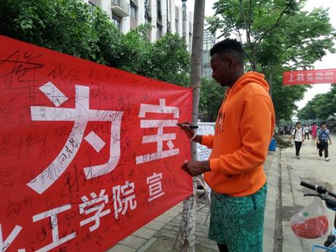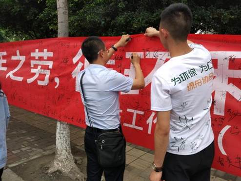 为大力推进生态文明建设,提升大学生环保意识,实现校园生活垃圾减量化、无害化、资源化处理,共享美丽校园共建美丽中国。5月18日,由学工部(研工部)主办,化工院承办的“校园生活垃圾分类宣传教育及倡议签名”活动,在学校二食堂门口举行。 活动现场,由化工院青年志愿者协会和绿舟协会志愿者为同学们讲解生活垃圾分类的目意义以及基本知识,以讲解和签名的形式呼吁同学们积极践行垃圾分类,建设可持续发展绿色校园。活动的开展受到了同学们和老师的认可和支持,学工部(研工部)副部长张浩、化工院党委副书记陈刚、副院长张辉等老师到场指导并参与现场签名活动,过往的同学积极响应垃圾分类倡议,承诺做到垃圾准确投放、科学分类。 青年志愿者协会志愿者王国栋为来往同学宣讲到:“垃圾是放错位置的资源,通过分类投放、分类收集,把有用物资从垃圾中分离出来重新回收利用,既可提高垃圾资源利用水平,又可减少垃圾处置量。希望同学们积极参与到垃圾分类的行动中,养成垃圾分类的好习惯。”化学工程与工艺2017级刘波同学表示,日常生活中的垃圾分类只是你我举手之劳,但对于环境与自我发展却意义深远。在活动举办之前,自己缺少垃圾分类的意识和习惯,但经过本次现场签名与志愿者的讲解,决定成为一名垃圾分类“代言”人,从自身做起,并号召自己的同学和家人朋友树立绿色环保意识,将垃圾分类落到实际行动中,为实现美丽中国贡献自己的力量。 (文/李欣 图/李梦田) 图1 活动现场情景 图2 志愿者为同学们讲解环保知识 图3 老师签名 图4 学院师生积极参与 图5 留学生参与活动 (审核:陈刚)