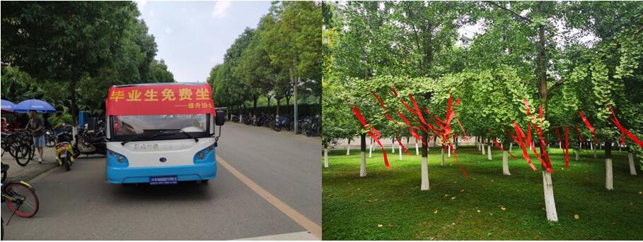 在爱心回收的过程中,也为学长学姐们免费提供校车“小白龙”,减轻大四学子们离校时搬运行李的负担,也让他们再一次乘坐小白龙游览西柚美景。除此,还带领学长学姐们再次走进校友林,看着他们写下心愿,高挂枝丫,让梦想随风飘扬。此刻,我们觉得之前所有的奔波劳碌都是值得的。