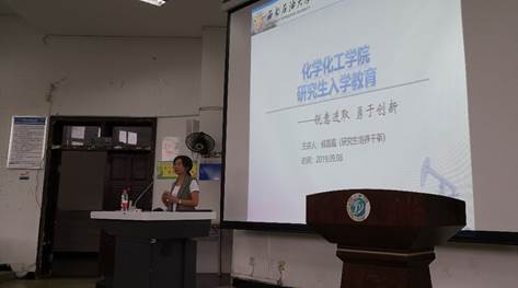 9月8日,化工院在思学楼B110开展2019级研究生新生见面会,对2019级全体研究生开展思想教育并解读《学生手册》细则。化工院党委副书记陈刚,研究生培养干事郝晶晶,辅导员冷帅、曾蓉及2019级全体研究生参加了此次会议,研分会成林同学主持。 会上,陈刚围绕学术规范、奖励资助、校纪校规等内容详细为同学们解读2019年新版《学生手册》,勉励大家充实丰富研究生学业生活。“如何在研究生阶段完成好每一步,突破自我?”就此问题,陈刚也给出了自己的意见。他表示,“研究生期间,大家更应尽早树立正确的目标,明确阶段性任务,不浑浑噩噩虚度时间,要潜心实验获得充实,踏实地才是千里之堤的基石。” 曾蓉就近年来研究生报考及化工院新生录取情况向大家做了详细介绍。她指出,大家要适应和调整从本科到研究生的角色转变,牢固树立安全意识,尽快融入化工院大家庭。郝晶晶为大家详细讲解了化工院研究生培养方案,并鼓励大家锐意进取,勇于创新,努力为自己的研究生生涯书写一份满意的答卷。 2019级硕士研究生刘涛表示:“这次大会让我明确了自己的目标,有了努力方向和前进动力,相信通过自己的努力会变得越来越好。”(文/曹琨要 图/成林)