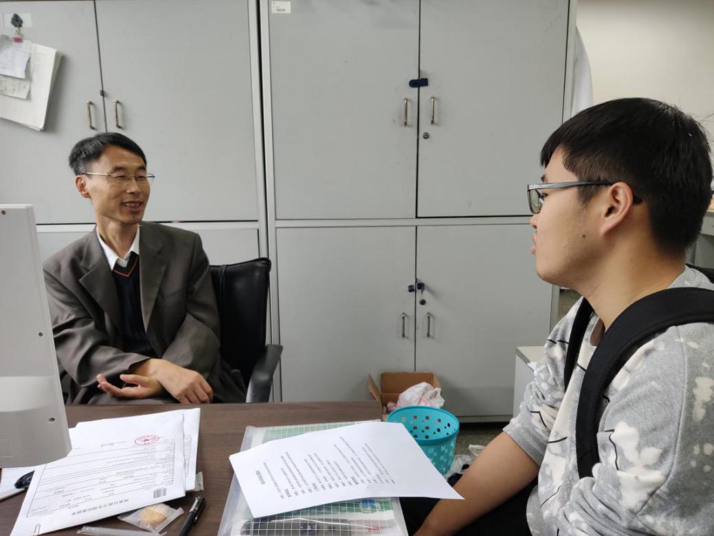 图 与学生交流中的邹长军 与历史相伴,与白衣同行 “他以身作则,言传身教,把‘以德立身、以德立学、以德立教’深入到课堂、深入到课下、深入到教师内心、也深入到学生内心。” 上课时,他喜欢引导学生从历史的角度去思考问题。当问到为何如此时,他为我们举了一个形象的例子:“这样的思考方式,会让学生的思维能力得到提升,就像我要求学生画思维导图一样,现在的学生不能仅学习孤立的知识点,要学会将各知识点连贯,具备纵深思维,要有层次感。就比如目前的人工智能,AI思维是一个单独的点,但其纵深度却很高,而人的思维深度达不到那个程度,却可以把许多思维知识由点连接成面,从而均衡发展。历史,就能很好地帮助学生将知识点连贯,只有思维发散,才能在今后人工智能的大环境下使人类保持竞争力。” 据2015级化学工程与工艺毕业生王萍萍回忆道,在“新生第一课”上,就被邹长军的课迷住了。“不羁的发型,执拗的眼神,连上了四节课,日语英文无缝链接,各种脑洞大开,他对科学有一种近乎痴迷的狂,真诚地把我们当自己孩子一样,困意全无,多云转晴!他是来自星星的邹教授吗?” 他爱学生,视为己出。让学生做的实验总是安全、无毒的,他说:“学生都是父母的宝贝,父母把你们托付给我,我又怎能让你们受到伤害呢?”他鼓励学生来实验室,“有什么好主意就告诉我,在我确保无安全隐患后,你们就放心大胆去做。” 身为一位化学教授,多年来他在化学领域取得了诸多成果,并对化学保持着极高的兴趣,当谈及当初为何选择化学专业时,他回忆道:“一是对老师这个职业的敬意,想为祖国培养人才;二是喜欢实验,喜欢白色实验服加身的感觉。因此便导致了对化学专业的选择。”但他第一次上讲台时,仍然“紧张得要命,甚至不敢看一眼讲台下的学生。”