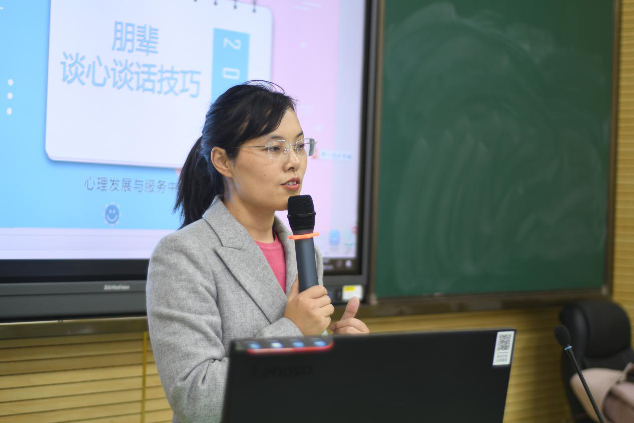 为提升心理骨干朋辈谈心谈话技巧,充分发挥心理骨干的朋辈心理支持作用,11月12日下午2:30,由心理发展与服务中心主办,化学化工学院承办的心理骨干技能培训——进阶培训的第3期(朋辈谈心谈话技巧)在思学楼B106圆满举行,心理发展与服务中心老师刘莉作为主讲嘉宾,与各学院心理骨干进行交流学习。 本期培训主要分为理论学习和实例分析两个环节,热身活动过后,刘莉老师就“朋辈谈心谈话技巧”进行了全方面的理论指导,就朋辈谈心谈话的优势向各位心理骨干进行了讲解,清晰阐述了朋辈谈心谈话的原则以及注意事项,从保密、平等、真诚三个方面出发,指出初次进行朋辈谈心谈话会出现的问题,并给予正确的指导。 最后,刘莉老师通过两个实例,带领各位心理骨干进行实际分析,分析过程中各位心理骨干积极发言,踊跃讨论,在欢声笑语中完成了此次培训。化工院心理骨干赵罗蒙分享到:“通过本次朋辈谈心谈话培训,让我更加明白作为心理骨干我们应该如何去和同学们进行沟通交流,怎样帮助他们进行情绪的疏导,为同学们提供心理的支持。” (审核人:宋姝蕾)