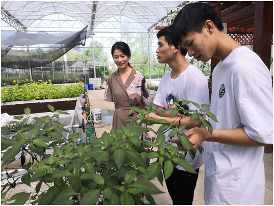 图1 学院劳动实践教育基地授牌 “仟卉园”是一个集果蔬批发、休闲采摘、观光旅游为一体的400余亩智慧生态园,视频监控农业生产现场、数据采集生产过程,远程遥控卷帘、灌溉、风机……整个园区全线搭建水肥一体化成套设备,依靠智慧农业系统进行管理。园区创始人黄莉岚带领同学们参观蔬菜种植基地,帮助同学深入了解三农,学习现代农业科普知识,体验育苗播种的乐趣。化工院2019级应用化学1班学生戴思凯说,参加这次活动,他学习到了有关植物生长的知识,感受到了农民的艰辛与食物的来之不易。