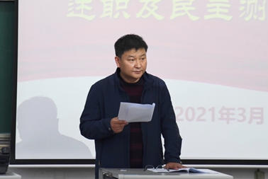 图二 段明发言 之后,化工院党委副书记陈刚对疫情防控期间学院工作开展情况进行了总结发言,陈刚强调:在接下来的工作中,我们要加强辅导员队伍的建设,培养更多优秀的辅导员骨干。 此外,化工院副院长张辉、副院长王林元、副院长唐鋆磊、刘宇程教授结合学院上一年度的学科评估工作和各项实验成果,依次对上一年度的工作进行了总结。述职结束后,随即进行了民主测评工作。 通过此次会议,全院教职工对学院领导班子在上一年中的工作有了全面的了解,学院整体工作取得了优异的成绩,也存在一定的不足,以此为新的起点,全体教职工在学院领导班子的带领下更主动地投入到今后的各项工作中。