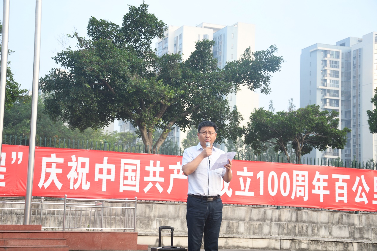 2021年是中国共产党成立100周年,也是“十四五”规划开局之年。100年前,中国共产党在嘉兴南湖的红船上诞生,怀着坚定的理想信念开启了“长跑”之路。化工院以建党100周年和毕业季为契机,6月10日上午7:00,在一期足球场开展“青春奋斗正当时,奔向百年新征程”庆祝中国共产党成立100周年支部百公里跑活动,化工院党委书记王兵、化工院党委副书记陈刚、各教工、学生党支部书记以及全体学生党员在内的300余名跑者参与了此次活动,用奔跑的汗水向我们伟大的中国共产党致敬。 化工院党委书记王兵在开幕式讲话,他表示:“支部为单位组织开展庆祝建党百年长跑活动,对于纪念共产党百年奋斗历程,激励化工院广大师生以饱满的精神面貌开展工作学习,积极投身双一流高校建设,具有重要的纪念价值和深远的现实意义。”王兵强调,希望大家通过参加此次活动,锤炼意志、锻炼身体,感悟中国共产党一往无前、奋斗不息、顽强坚韧、永不放弃的精神品质,以奋斗者的姿态和奔跑者的热情踏上全面建设社会主义现代化国家新征程,以优异的表现迎接建党一百周年。 在歌曲《我们走在大路上》优美的旋律声中,支部百公里跑活动正式拉开帷幕,各位党员佩戴党徽,手持小党旗沿梦溪湖绿道开启了长跑,活动现场气氛热烈,所有的选手不论速度快慢,里程长短,都全力以赴参与到百公里跑活动中。大家互相加油,互相鼓劲,团结协作,共同向前,展现出良好的精神风貌。 化学教研室党支部书记罗米娜说道:“习近平总书记在教育文化卫生体育领域专家代表座谈会着重提到“要让孩子们跑起来”,本次活动就是一次很好的实践和载体,同学们表现出的乐观精神和顽强意志深深感染了自己”。 应用化学专业学生第一党支部刘开源同学说:“参加这次活动不仅锻炼了身体,还学习到中国共产党百年奋斗展现的宝贵精神力量,深受启发,深受鼓舞。今后一定要把这种精神力量贯彻到自己的学习生活中,努力奋发,迎难而上。” 化工院举办支部百公里跑活动是丰富和壮大高校体育活动的积极探索,是“体育+党建”的载体创新,是推动体育强国的生动实践。本次活动通过悦跑圈APP打卡,以支部为单位一周内累计打卡100公里即顺利通关,引导全院师生党员以积极向上、奋发进取的精神风貌,喜迎建党一百周年华诞。