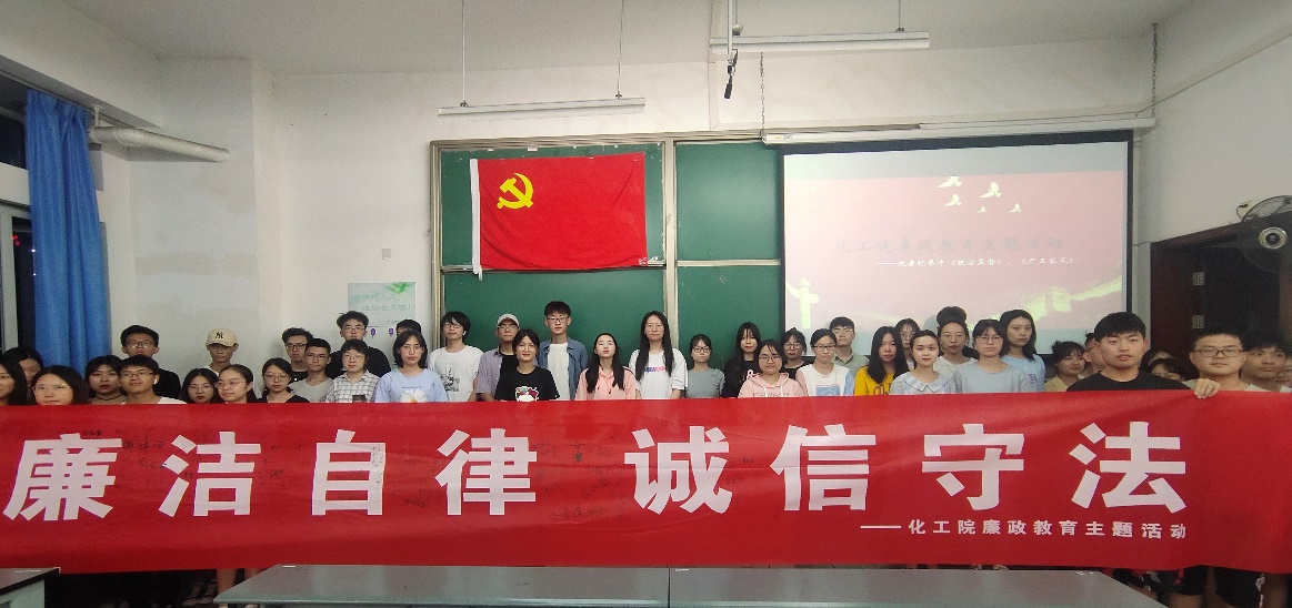 为增强广大学生党员廉洁自律、诚信守法的意识,提高学生尊法守法的思想觉悟,从而进一步建设校园廉政文化,2021年6月8日晚上7时,化工院党员服务站于明辨楼C103组织开展了大学生党员“敬廉崇洁,诚信守法”观影活动。总计100名中共党员、中共预备党员及入党积极分子参与。 观影开始前,在主办方的安排下到场学生在横幅上签名。大家观看了《正风反腐就在身边》专题片中“政治监督”、“严正家风”两个板块。片中以鲜活的事例和血淋淋的教训揭露了隐藏在社会平静水面下深不可测的巨型旋涡,也以此提醒着人们,廉洁清正、以身作则在工作中是至关重要的。 党站站员以及各党支部代表在结束观影后踊跃发言,李永光同学表示,自己在观影后进一步认识到了反腐倡廉在提高国家综合实力、打造人民幸福生活方面的关键作用,作为一名预备党员,会在今后的工作中,时刻将此牢记于心,实事求是,严格要求自己。 此次观影活动的顺利开展,使同学们深刻意识到,只有认真遵守相关法律规定,时刻以高标准的廉政思想武装自我,做事脚踏实地,做人两袖清风,才能使国家在全方位的发展上取得更为显著的成就,才能使人民离理想中的幸福生活更近一步。(文/雷小桐 图/袁浩伟) (审核:曾雅清)
