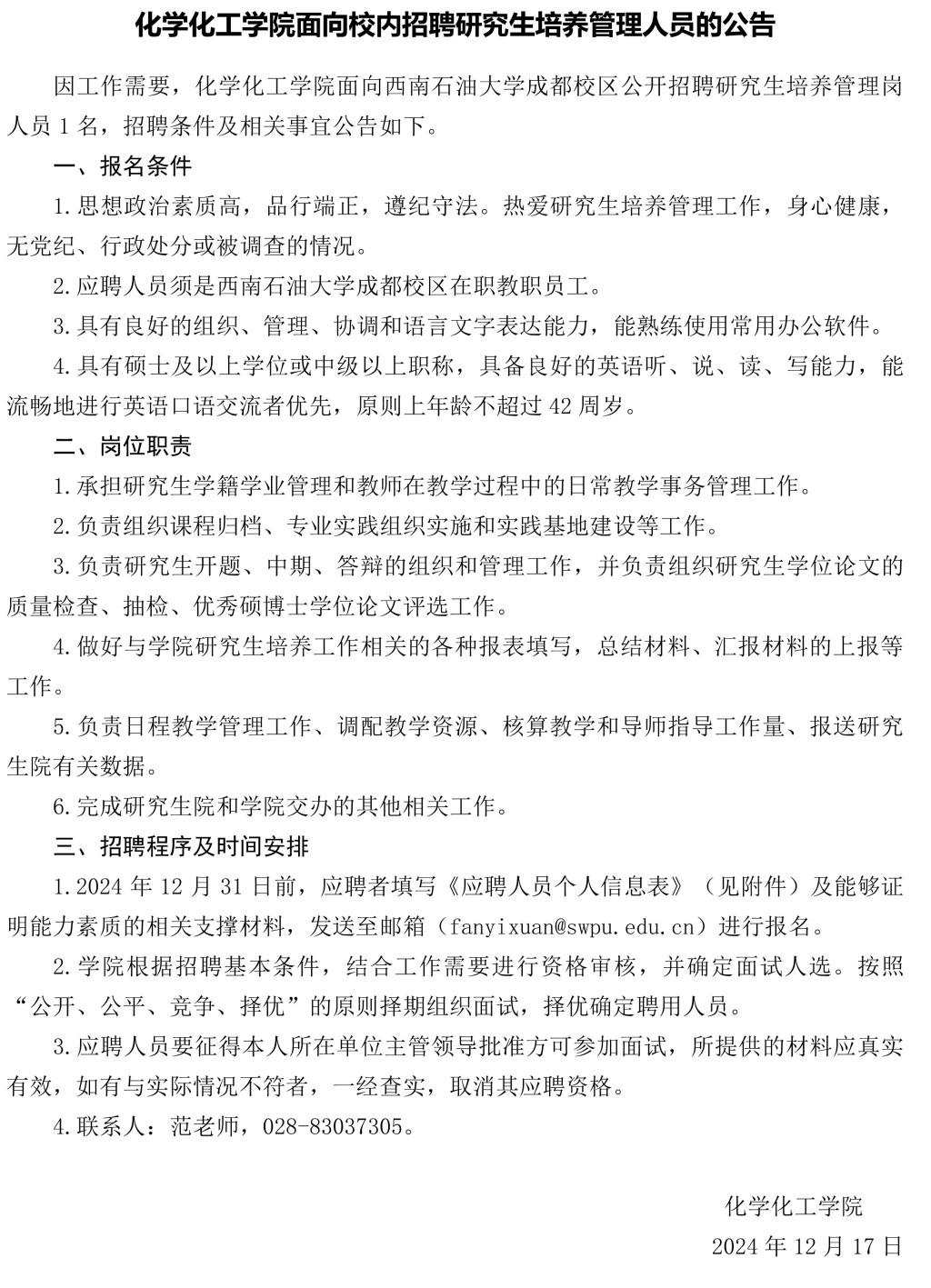 上一条:化学化工学院2025年毕业季学生实验室安全工作提示 下一条:西南石油大学化学化工学院《化工原理Ⅰ-1》等四门课程AI课程建设项目采购询价公告