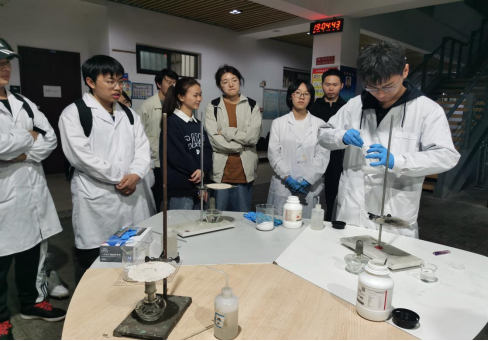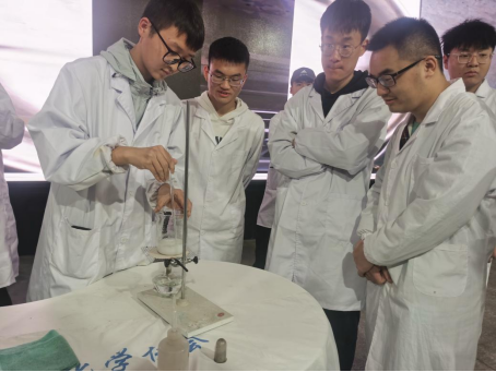 图 2:同学们进行活动的参与 演示结束后,化学协会也邀请感兴趣的同学进行实验的操作,同时有专人负责实验过程的安全。参与实验的每组同学都获得了化学协会准备的零食盲盒的抽奖机会。在大家的努力下,互动实验也获得了成果。