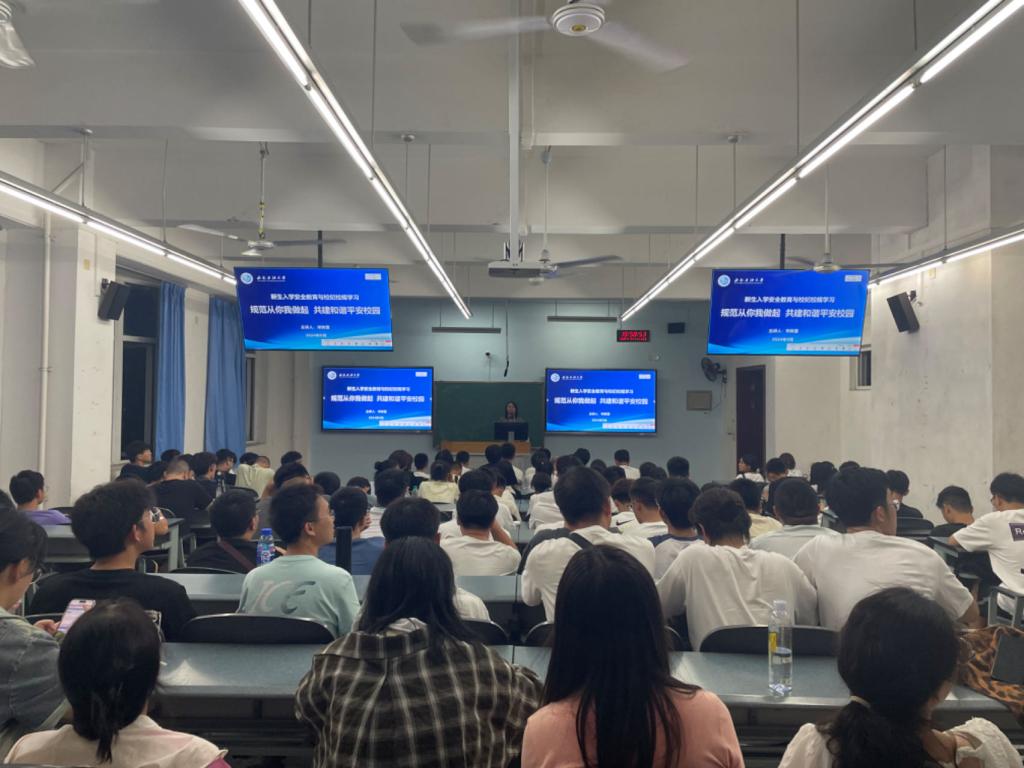 为增强2024级本科新生的纪律意识、安全意识,保护大学生人身、财产安全,引导同学们自觉遵守纪律规矩,筑牢底线意识,9月11日晚,化工院在明德楼分批次开展新生安全与法纪教育,学院全体本科新生参加。此次讲座由2024级新生辅导员宋姝蕾老师主讲,彭怀雪老师主持。 宋姝蕾老师着重讲述了常见的安全问题,通过列举实例引导同学们增强安全防范意识,并呼吁同学们下载国家反诈中心APP,将防范诈骗落实到行动之中。接着以学生手册为切入点,进一步解读校规校纪。她分别从学生行为准则、学校管理规定、违规违纪处分、请假流程等方面进行了说明,并着重强调了诚信考试的重要性,引导同学们常敲思想警钟,常思贪欲之害,时刻绷紧纪律规矩弦,把遵规守纪刻印在心,内化为言行准则,进一步强化纪律意识、加强自我约束。 作为新时代的大学生,不仅要追求学习上的卓越,更要注重品德修养和规则意识的培养。同学们纷纷表示,将把所学所得应用到日常生活中,成为遵纪守法的践行者,时刻铭记纪律规矩的重要性,牢固树立底线意识,共同营造安全、和谐、有序的校园环境。