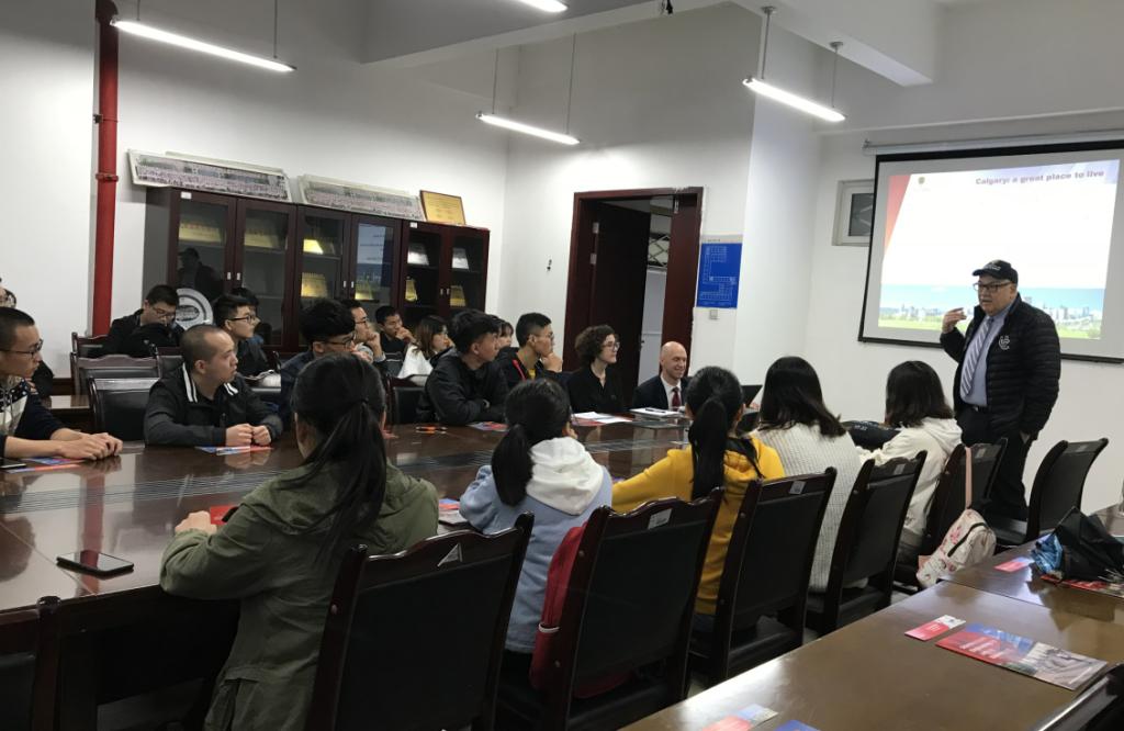 为促进学院与加拿大卡尔加里大学的交流合作,卡尔加里大学国际项目负责人Kevin Ellwood,工程部负责人Heather Clitheroe于10月18日在明德楼A523就人才联合培养、学术合作等方面与学院进行了交流。 Kevin通过PPT演讲和播放短片的形式,介绍了加拿大的城市面貌和人文特色。也就与我校国际交流合作方面进行了介绍,他指出,两校在联合培养方面,分别有3+2、2+2的培养模式,同时,双方还就科研项目合作方面进行了探讨。 随后,Kevin介绍了联合培养申请条件,如学生的学习成绩、英语成绩等要求,也针对学生的联合培养申请方式做出了详细说明。同时从经费调拨,政策扶持等方面详细描述了加拿大政府对学校的支持力度,并向学生展示了卡尔加里大学的未来国际学生培养计划。Heather提出,今后两校之间将会在更多领域进行合作。 卡尔加里大学是加拿大排名前七的研究性大学之一,近年来,已与中国北大、清华、中山、同济等20余所大学建立了交流关系。“西南石油大学-卡尔加里大学联合培养计划”2+2项目和3+2项目也给广大石大学生一个放眼看世界的机会,为他们的自身发展带来了新的际遇与机会。