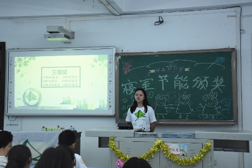 秉承着“绿色石大,青春同行”的主旨,呼吁同学们一起行动起来节能环保,加强大学生对环境保护,节能减排的理念,绿舟协会举办了为期三个月的第四届寝室节能大赛,共有来自全校各年级180多个寝室参与进其中,最终有12个寝室脱颖而出,分别获得了一、二、三等奖,并于6月2日晚7点在思学楼C202举行了颁奖仪式。 “我给我们的室友说,不要为了省电不开灯不充电,我们不能为了省电而去不用电,我们只要做到离寝熄灯,及时拔掉电源,通过这些行为,把我们曾经浪费的电节约下来,就达到我们参与这次活动的目的了。”一等奖寝室22-B306寝室长如是说。 本届“绿色寝室,节能生活”大赛在以往仅节电比拼的基础上增加了低碳行动与垃圾分类环节宣言环节,参赛者在微博上晒出他们的垃圾分类行动、低碳出行行动和节电习惯,累积发博950条,阅读量达46.6万,展示出了石大学子良好的节能环保品质与绿色情怀。 在本次仪式上,共颁发了一等奖寝室22-A273、22B306两个,二等奖寝室8-623、15-223、2-604、1-421四个,三等奖寝室15-415、10-613、10-114、10-627、9-319、21-B240六个。在颁奖仪式后,各寝室上台轮流分享自己寝室的节电技巧与心得。 通过这次分享,现场每一个人都学到了更多的节电技巧,对节电的意义和重要性有了更深的了解。“节电从不是一件小事,它需要我们持之以恒,积少成多。”随着主持人的总结,为期三个月的寝室节能大赛圆满画上了句号,然而,正如主持人所言,节电需要我们持之以恒,我们不仅要这三个月中做到节约用电,更要在未来中,从每一件小事中节约用电,让节电成为一种习惯。愿在环保的路上,你我同行。 (审核:郑璇)