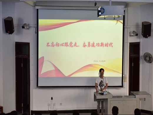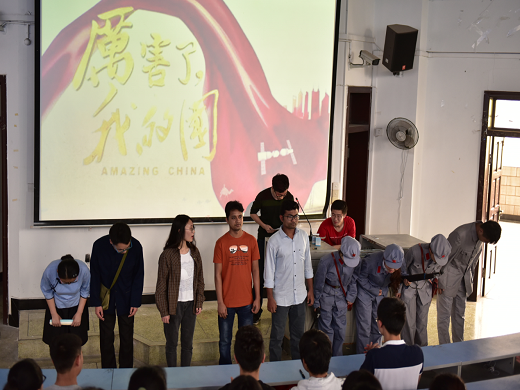 2018年4月19日下午2:30,化工院应用化学、环境工程2017级在思学楼B210召开“不忘初心跟党走,奋勇建功新时代”主题团组织生活,应用化学、环境工程2017级全体同学参加了本次团组织生活。 团组织生活在团歌声中拉开帷幕。合唱结束后,应用化学一班通过节奏感极强的快板《三句半》,向大家展示了十九大筑中国梦,创造辉煌的伟大理想。接着,在应用化学各班级联合推出的外语话剧《Hans Krebs》中,同学们将法西斯势力在战争末期穷途末路、困兽犹斗、垂死挣扎的形象表现得栩栩如生。应用化学二班表演的情景剧《不忘初心》将本次团组织生活推向高潮,从中我们明白了只要不忘初心,经历一定的磨难,终究会获得成功。另外,话剧表演《开党会》、配音秀——《那年那兔那些事儿》、表演节目《历史服装秀》、幽默喜剧《幸福梦》等节目展示了化工院2017级学生生动活泼、积极向上的精神风貌。最后,团组织生活在庄严的国歌声中宣告结束。 会后,同学们纷纷表示,此次团组织生活形式多样、多姿多彩、内涵丰富、影响深远,不仅为同学们提供了一个展现自己风采的舞台,更激发了同学们坚守理想,奋勇拼搏的热情。17级应用化学四班团支书李澳华说道:“通过形式多样的团组织活动带动和引领班级同学认真学习党的十九大精神,不忘初心,牢记使命,积极为班级贡献自己的力量。”