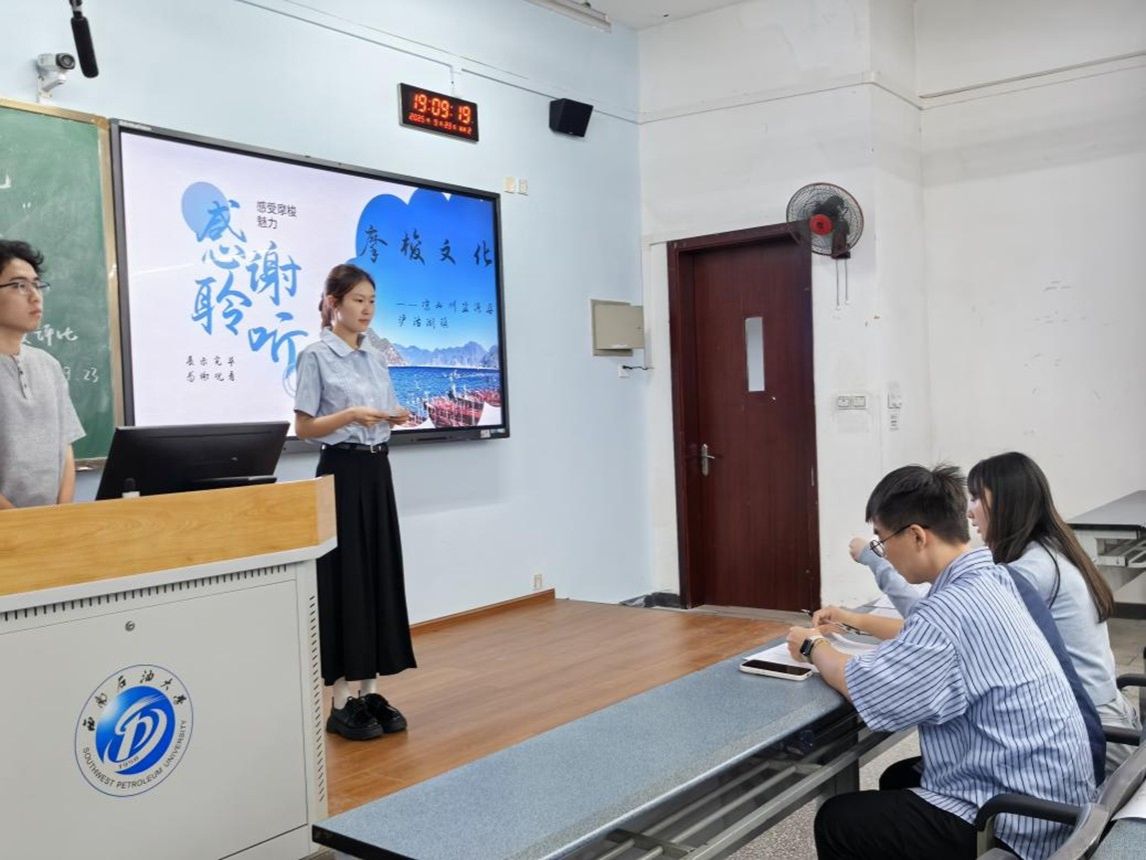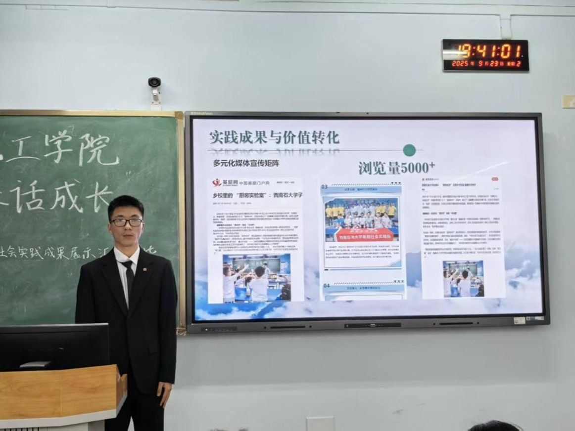 为扎实推进学校党委关于师生“讲”“赛”“践”“炼”专项活动部署,9月23日晚,化工院团委在明德楼A205举办“实践归来话成长”暑期社会实践成果展示汇报评比活动。 从实验室到田间地头,从理论探索到躬身实干,今年暑假,学院42支队伍400余名青年学生围绕文化传承、化学科普、敬老帮扶、红色研学、支教服务等主题,奔赴全国各地开展实践活动,以责任担当诠释新时代新青年的青春风采。 答辩环节里,9支实践队伍代表依次登台动人讲述实践故事。“乡韵织梦”暑期社会实践队聚焦摩梭织布,探究传统工艺与化工新材料的融合路径,为非遗传承注入化工智慧。“实干油我”青年实干专项调研团响应团中央“青年实干家计划”,组织本硕博学生团队参与社会深度调研与实践服务,践行了化工青年扎根行业、奉献社会的使命担当。“雪域纹章·藏绣探赜”暑期社会实践队深耕嘉绒藏绣,分析刺绣染料的分子特性,探索非遗现代化传承的新可能。“科惠乡土·化育未来”暑期实践队开展化学科普活动,以趣味实验、科普讲座让乡村孩子感受化学魅力。“星火铸魂”暑期社会实践队则奔赴西北大漠的祖国石油工业摇篮,追溯石油化工发展的精神根脉,在研学中厚植家国情怀。 观看完汇报展示评比后,化学工程与工艺2024级学生冯仁子感触颇深,说到“各个实践队的精彩讲述,让我仿佛跟随他们的脚步,亲历了一场场扎根基层、服务社会的青春实践,这才是青春应有的模样。”