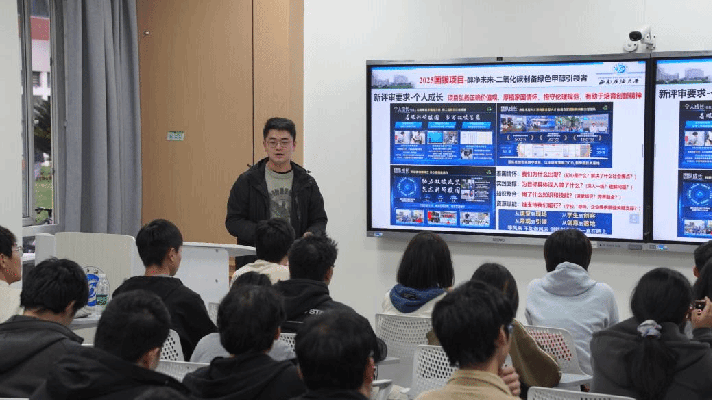 为深化学生党员“服务师生全局、引领朋辈成长”的使命担当,切实破解学生学术创新与科研实践痛点,化工院“星火”学生党员服务中心联合“油化先锋”博士党支部,打造的学术赋能品牌活动——“博士工作坊”第4期,于10月30日在明辨楼C104成功举办。 本期活动紧扣科创竞赛实战需求,特邀化学工程与技术2023级博士研究生、2025年中国国际大学生创新大赛国家级银奖获得者袁亮主讲。袁亮聚焦国创赛经验分享,从大学生创新创业政策背景切入,通过“什么是国创赛”“为什么参赛”“如何在赛事中争先”三大维度,拆解从备赛到获奖的全流程实战干货。针对赛事新增的“个人成长”评审要求,他特别强调,当代大学生的科创之路需厚植家国情怀、锚定学校发展需求,将个人理想融入集体发展,方能在项目实践中实现成长蜕变。此外,他还点明本科生“思维活跃、潜力足”的优势,鼓励同学们早做规划、夯实基础、提前布局。 本次工作坊依托博士生的学术优势与赛事经验,搭建起“一站式”学生社区的科创交流平台,同学们在榜样引领与热烈互动中明晰方向、点燃热情,现场反馈“干货足、针对性强”。 作为学院党建引领、朋辈育人的核心载体,“博士工作坊”前三期围绕论文发表、求职就业等学生高频关切主题开展分享,累计覆盖师生超300人次,为品牌持续赋能科创打下坚实基础。未来,学院将继续深耕品牌内涵,聚焦学生需求开展精品活动,助力青年学子在科研创新道路上稳步前行、绽放光彩。