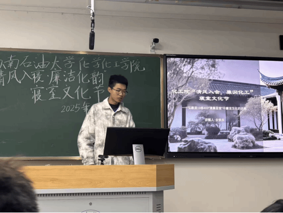 为厚植校园廉洁文化根基,引导青年学生树立崇廉尚洁价值观,2025 年 11 月 2 日,化学化工学院于博学楼 B104 教室圆满举办“清风入舍,廉润化工”寝室文化节决赛。活动以寝室为核心展现场景,将廉洁内涵与大学生青春生活深度绑定,让“廉”的理念在集体生活中生根发芽、浸润人心。 活动现场氛围热烈,各参赛寝室紧扣“廉洁”主题,通过多元形式诠释作品理念。部分寝室以 PPT 讲解为载体,图文并茂呈现寝室特色廉洁设计;另有寝室以原创视频为依托,通过集体文艺表演、情景演绎等鲜活形式,让廉洁精神融入日常点滴。互动环节中,全体学生庄严许下“以廉为荣,以洁立身”的承诺,廉洁自律意识在集体宣誓中进一步筑牢。 比赛亮点纷呈,各赛道佳作频出。装饰赛道上,17 栋 212 寝室表现亮眼,其寝室布置创新融入竹韵元素,既美化了居住环境,更以竹之 “正直” 暗合廉洁内核;才艺赛道中,19 栋 405 寝室脱颖而出,其创作的八分钟廉洁主题视频角色鲜明、情节紧凑,生动诠释 “不越纪律红线” 的深刻内涵,引发全场共鸣,二者均斩获一等奖。此外,10 栋 204、223 等 5 个寝室凭借原创剧本生动传递廉洁精神,荣获二等奖;10 栋 201、120 等 6 个寝室以艺术化表达彰显独特风格,斩获三等奖。 此次活动以寝室文化为纽带,让廉洁文化走出课堂、融入生活,不仅丰富了校园文化生活,更在青年学子心中播下崇廉尚洁的种子,为校园廉洁文化建设注入了青春动能。下一步化工院将持续深化廉洁文化育人实效,拓展活动载体、创新教育形式,推动崇廉尚洁之风在校园落地生根、蔚然成风。