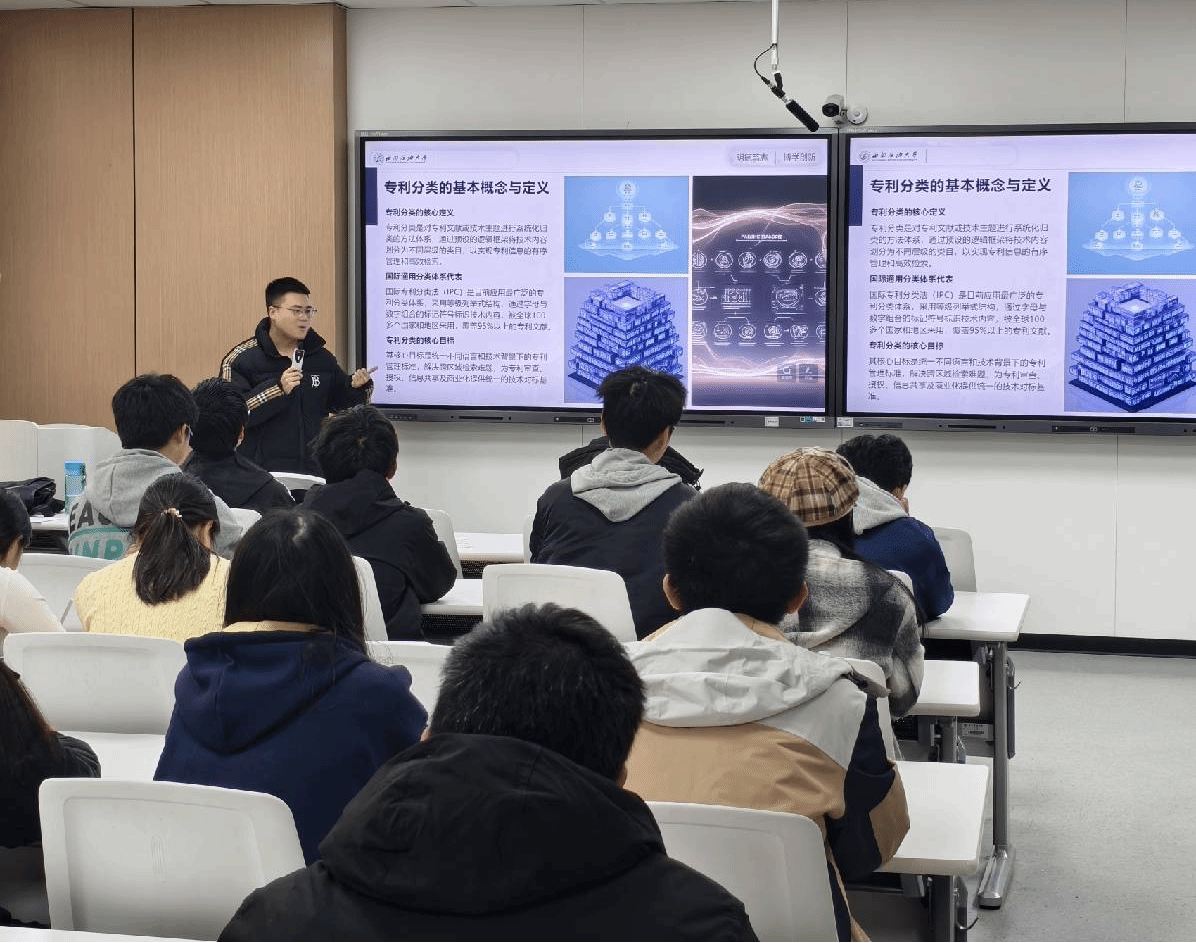 为充分践行学生党员“服务师生、引领朋辈”的责任使命,切实解决学生在专利创新、科研实践中的重点难点问题,化工院“星火”学生党员服务中心主办,研分会协办的“博士工作坊”第5期于11月27日在博学楼A106顺利开展。 本期活动聚焦专利创需求,特邀化学工程与技术2023级博士研究生邓桂重主讲,结合自身参与微反应器、稠油供氢剂等多项专利研发与申报的实战经历,从专利基础认知切入,通过“专利核心价值”“创新点挖掘路径”“撰写申请技巧”三大维度,拆解从灵感萌发到专利授权的全流程干货。针对学生专利创新常见困惑,他重点解读了国际专利分类体系、国内三大专利类型的核心要点,结合实际案例分享了观察生活、跨学科融合等创新点挖掘方法,强调专利创新无需追求“高大上”,“小改进”亦能凸显价值,鼓励同学们锚定行业需求与学校发展方向,早打基础、精准布局,将个人科研实践与时代需求紧密结合。 本次工作坊依托博士生的专利实践经验与学术积淀,搭建起高效便捷的朋辈科创交流平台,同学们在细致讲解与互动探讨中理清专利创新思路、掌握实操关键,有效激发了科研创新热情。(文/李嘉一;图/王子铭)