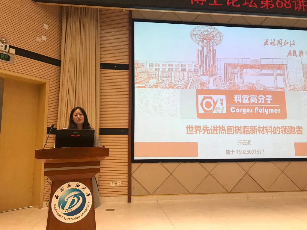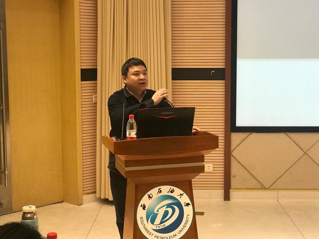为增强校园学术氛围,完善人才培养机制,激发研究生的创新潜能,展示研究生健康向上的精神风貌,提高研究生的综合素质,11月21日下午3点,由化工院研究生会同材料院研究生会及校研究生会共同举办的“进德修业”实践项目——以研促学博士论坛学术科技交流活动在思学楼A114举行,本次论坛有幸邀请到化学化工学院教师姚军、材料科学与工程学院博士邢云亮担任主讲嘉宾,为大家分享他们的科研及工作感悟。 邢云亮,西南石油大学材料化学专业博士,成都科宜高分子有限公司总经理,四川省科技创新苗子。拥有8年的热固性树脂及其复合材料的科研及项目管理经验。邢云亮博士介绍到该公司是一家专业从事高性能热固树脂研究、专利转化、应用研发、产业化指导与技术服务于一体的高新技术企业。从“一个芯片,我们到底在哪里?”问题出发,详细介绍了高分子材料在通讯服务器用电路板、热固树脂增韧方面的应用。对于电子电器领域,特别是高端复合材料产业,例如商用大飞机结构件、轻量化新能源汽车配件以及轨道交通内饰件,具有广阔的应用前景。根据自己的科研经历,邢元亮博士谈到:“作为一名研究生,应该提高材料各领域的前沿发展的关注度,希望大家勇于尝试,勇于探索,很多机会都是留给有准备的人。”