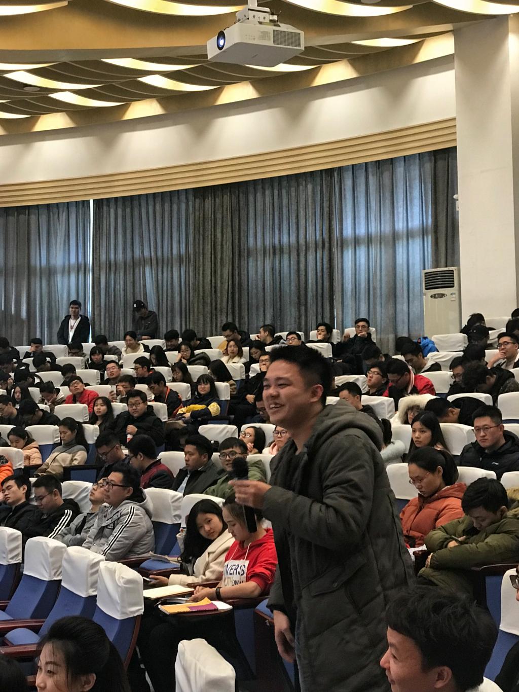 邢云亮博士正在做学术报告 在互动提问环节中,邢元亮博士就同学们提出的“怎么把握创业的契机”、“对于科研产品怎样做好市场推广”等问题做出了详细解答,论坛在一片活跃和轻松的氛围下进行。