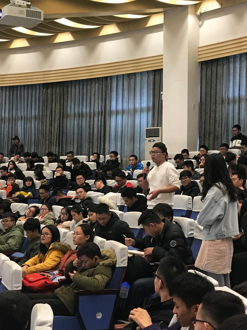 现场参会同学积极向主讲人提问 姚军,硕士生导师,主要研究纳米材料、生物和化学传感器、生化分析、光谱分析等领域,在SCI期刊Chemical Reviews(IF= 47.928)上发表论文1篇(ESI高被引论文),以及多篇核心SCI论文,单篇最高他引240次,总他引420次以上。从纳米材料的思想来源和发展阶段出发,姚军老师介绍了纳米材料在太阳能电池、光电传感器、纳米发电机、航天航空等方面的应用。姚军老师谈到,纳米材料的制备方法包括气相法、液相法、水热法、溶胶--凝胶法等,以及制备要求和制备途径,可实现纳米材料的可控合成及结构设计。对于自己的科学研究,姚军老师通过“MoS2纳米材料的制备表征”、“Eu掺杂NH2-UiO-66的合成与表征”两个实例,讲述纳米材料在荧光及其电化学方面的应用。“做科学研究一定要与时俱进,时刻关注科研领域的最新动态,在材料方面,尤其关注诺贝尔奖获得者所研究的材料,还应提高研究的创新性”,姚军老师以自己的科研经历与同学们分享道,“在科研上,每位同学都应时刻保持好奇心,刻苦专研,我始终相信,不经一番寒彻骨,哪得梅花扑鼻香。”