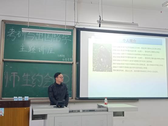12月6日,化工院在明德楼A303举办考研与出国留学主题讲座。本次讲座由拥有考研,国企工作,海外留学和高校工作经验的孙晋老师担任主讲师,分享他的考研和出国留学经验。本次讲座的目的在于给大一新生一次了解考研和出国留学的机会,也让大二大三的学生更全面认识考研和就业情况,为所有学生提供成功考研和出国留学的经验,帮助学生解决在考研和出国留学方面可能遇到和已经遇到的问题。 主题讲座主要从如何准备国内考研,如何准备出国留学,如何选择考研和留学以及国外大学的申请流程几个方面展开。在如何准备国内考研方面,孙晋主要告诉同学们在大一大二为考研打基础大三做好考研准备工作。在选择国内院校方面,孙老师告诉同学天津大学、华东大学等学校都是比较好的考研选择。接下来,就如何利用好大学前三年的时间等10个问题孙晋进行了讲解,他表示对考研要做好提前规划并对所报考的高校以及专业进行较详细的了解。他还表示在出国留学的时候要兼顾多方面的问题,比如在外学习的费用是否给家里带来了巨大的经济压力,如果有这方面问题的话出国留学学生可申请做导师助教,可减轻家庭对出国留学的经济压力。 参加主题讲座的应用化学2018级专业的学生尹露表示,通过听取孙晋老师的经验分享,她对是否考研的问题答案更加明确,她获得了更多有关考研和出国留学的信息,她认为此次讲座对于她考研有着莫大的帮助。 文/宋梦嫒 图/尹露