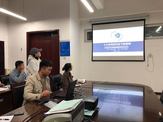 为提高我院研究生素质能力,促进研究生德、智、体全面发展,实现全面成长成才,11月18日晚,化工院在明德楼A523举行了2017-2018学年度研究生先进集体及个人,研会指导老师冷帅、研会主席梁浩担任此次评审。 本次参与答辩的共有6人,其中李文靓、常峻博进行“十大学术成就奖”答辩,井萌萌、刘东芳进行“十大杰出研究生”答辩,李文靓、张凡进行“十大优秀研究生干部”答辩,姚锰、张凡进行“十大先进班集体”答辩。六位同学通过精美简练的PPT做出精彩演讲,展现各自风采。其中李文靓、张凡进行了两个“十大”荣誉称号答辩,不仅展示优异的学习成绩,还展现较强的领导力和积极乐观的心态。在答辩同时,冷老师根据选手的现场表现、学术成果、学生干部经历等各方面因素提出宝贵意见,帮助同学完善答辩。冷老师也建议同学们在以后进行学术展示时做好充分准备,使用最精炼的语言在有限的时间内使自己的才能得到最大化的展现。最后,冷老师谈到,“十大系列荣誉称号对于我校研究生来说是非常光荣的,竞选过程也会让同学们收获非常宝贵的经验,希望在研究生阶段的你们能够全面发展、成长成才,培养严谨求实的科研态度和勤学善思的科研精神,争做一名优秀的研究生”。 为给化工院研究生学子搭建一个交流平台,展示学术科研能力和综合素质能力,树立优秀榜样,学院每年都会举行先进集体及个人的评选工作,受到师生的广泛关注。预答辩旨在为正式答辩做好充分准备,展现学生的精神风貌,营造更好的学术氛围和优良学风,也希望各位同学在正式答辩中取得优异成绩。(文/魏紫静、祝梦 图/魏紫静)