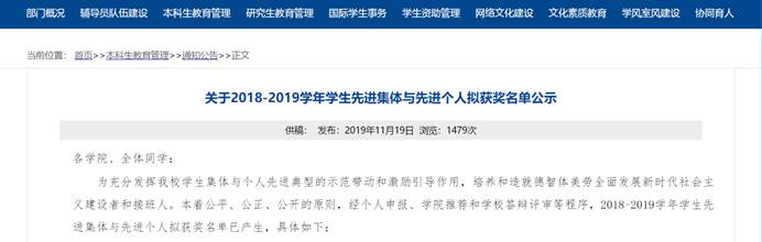 厚积薄发--化工院研究生在2018-2019学年先进集体与先进个人评选活动中喜获佳绩2019-11-21 作者:文/刘羚 编辑:陈刚 审核: 浏览:[]