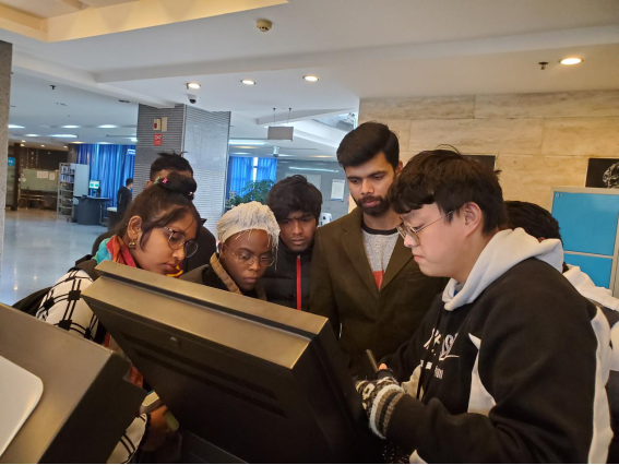 “书山有路勤为径,学海无涯苦作舟”,自古以来,中华文化都重视书籍的力量。为进一步增加留学生们对中华文化的了解,促进留学生们勤奋学习,营造良好的学习氛围。化学化工学院2019级留学生辅导员以及班导们于12月12日下午15:30时,召集2019级本科留学生,开展了“书香飘来,经典诵读”中外学生文化交流活动。班导们为留学生们详细介绍了借还图书流程,储物柜用法,图书查询流程,以及楼层图书类别分布等基本知识。促进留学生们更好的融入西南石油大学良好的学习氛围,开启丰富的学习生活。 活动过程中,留学生们全程保持安静,仔细聆听班导们详细的轻声讲解。班导们亲自耐心示范,教学如何存放物品到储物柜,如何自助借还书籍,如何利用图书馆其他的资源等。同时留学生们被图书馆紧张而有序的学习氛围所打动,收获良多。经过此次活动后,留学生纷纷表达了自己的切身体会。其中来自赞比亚的Mirriam说道:“中国的学生学习十分勤奋,我第一次见到这么寒冷的天气还有人愿意在室外背诵知识,以防自己松懈的学生,我要向他们一样勤奋学习,在热爱化学的这条路上走下去。” 本次活动的顺利开展,加强了留学生对学习生活的体会,教会了留学生们如何合理有效利用我校学习资源。促进他们热爱学习热爱书籍。