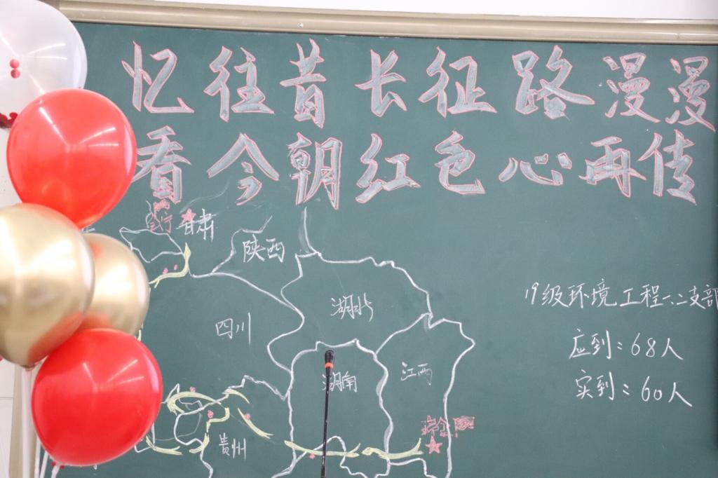 为深入贯彻落实习近平总书记关于弘扬伟大长征精神的号召和嘱托,帮助我部青年忆长征精神,弘扬长征精神。12月19日下午,2019级环境工程第一、二支部于思学楼A209举行第三次团组织生活,本次团组织生活为校级推优,由环境工程第一支部的高瑞栋和金盼晴主持,第一、二支部全体成员共同参与。 本次团组织生活向我们展示了:诗朗诵——《致敬》;歌曲——《长征组歌》、《歌唱祖国》;话剧——《在路上》;人物小故事——《漫漫长征》、《保卫家国》;歌舞——《长征路上》等与“长征”相关的节目。其中由环境工程第二支部成员带来的话剧再现了长达两万五千里的情景,让同学们感受到长征途中的艰苦与感动。为增加团组织生活的意义性,本次团组织生活还有知识竞答环节,共设15题,都是长征的相关知识,本环节在带动同学们的积极性,带动现场氛围的同时,也带领同学们去更好地了解长征。 在活动最后,全体同学一起观看了一个与长征有关的视频。伴着《十送红军》,本次团组织生活正式结束,同时环境工程第一、二支部第一学期的团组织生活成功收官。在这次校级推优中,环境工程第一、二支部取得了优异的成绩。(文/彭雪莲 图/杨一)