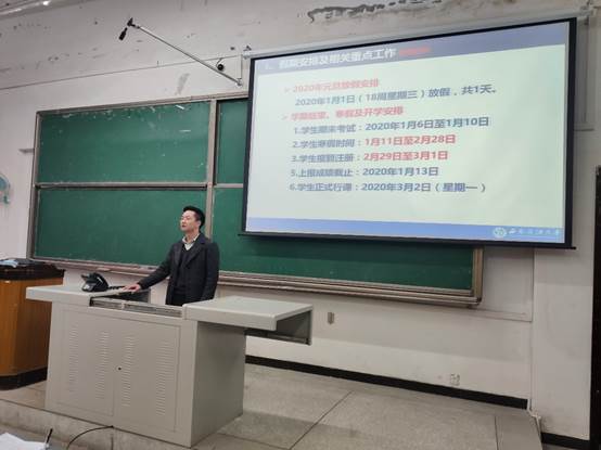 12月22日晚19:30,化学、应用化学2017级在明辨楼C205召开2019年秋季学期期末年级大会。辅导员杨磊主持会议,化学、应化2017级全体同学参加。 杨磊首先就2020年元旦节、寒假放假时间安排和学期结束相关重点工作向全体同学做了说明,同时结合学生实际,强调了期末考试、报到注册、成绩查询、下学期正式行课等重点时间节点。针对期末考试即将到来,杨老师组织全体同学深入学习了《西南石油大学学生考试违纪、作弊处理办法》(西南石大教[2017]59号)、《西南石油大学考场规则》等文件,讲解了违纪和作弊行为所导致的严重后果,要求所有同学必须牢固树立遵守考场规则、诚信应考的观念,扣好人生的第一粒扣子。 随后,杨老师结合近期国内各高校频发的安全事件,强调所有同学要时刻绷紧安全这根弦,树立红线意识,注意人身安全。此外,杨磊还分析了近年来研究生考试报考形势与就业环境,提醒所有同学做好职业生涯规划,早做准备,以崭新的精神面貌迎接2020年的到来。 会后,化学2017级刘亚鑫表示:“本次会议明确了我的奋斗方向,我将好好总结今年得失,在新的一年中努力学习,为明年考研做好准备。”