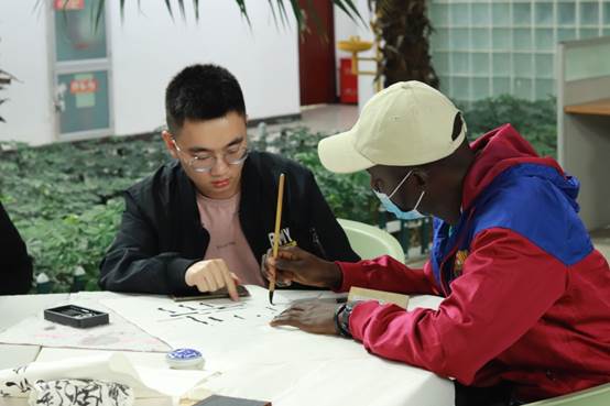 2020年11月 5日,化学化工学院面向2018级国际留学生开展了“笔墨中国”汉字书写活动。旨在提高国际留学生对于汉字的掌握与应用,提升汉字书写水平。活动开始前,师生共同精心准备了各项所需材料,以及由辅导员进行对于笔墨纸砚的详细讲解。 活动过程中,由一名中国学生进行示范,国际留学生模仿以及中国学生对其不足之处进行纠正,同学之间有说有笑,在愉快的气氛下增进了对于汉字的认知。 此次活动中,留学生们体验了书写书法的乐趣与此同时对于书法的历史背景有了更深的了解,通过开展此次活动,期望能使中国传统文化在新时代有新的传承与发展。