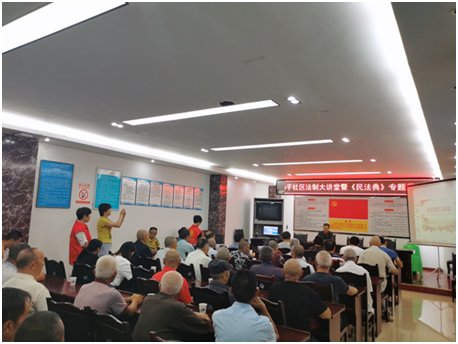 2020年8月,化学化工学院青年志愿者协会在板桥社区开展了志愿服务进社区普法宣传活动。志愿者通过实地走访,借助网络的便捷,向板桥社区民众普及“微法律服务”社区小程序,发放调查问卷,协助社区开展了法制大讲堂。