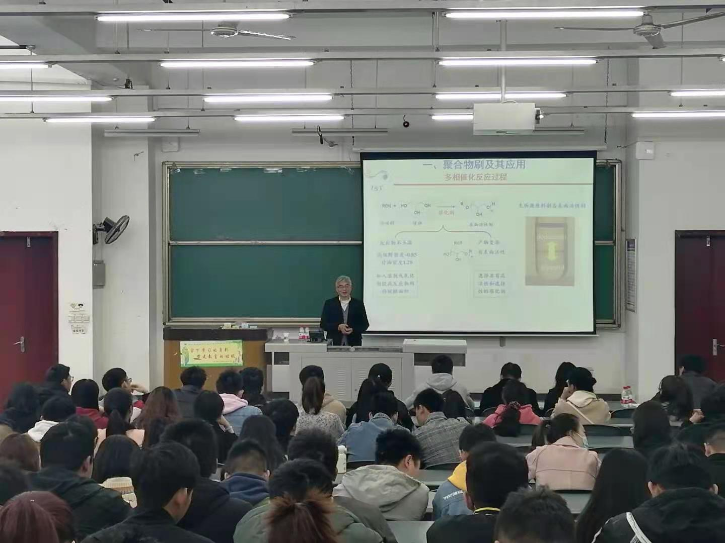 3月24日上午,华东理工大学化学系刘洪来教授应邀来访我院,并在明德楼A312带来一场题为“固体表面改性-聚合物刷的溶剂响应特性”的学术报告。化工院部分师生参加此次报告会。 会议中,刘洪来教授主要对聚合物刷结构的密度泛函理论,聚合物系统的自由能模型以及固体表面铆接高分子刷的构型随周围溶剂性质变化的规律和应用实例进行介绍。铆接高分子是固体表面改性的常用方法之一,如何构建对温度、PH、溶剂等环境变化敏感的智能固体表面是研究人员关注的重要课题之一。特别是混合高分子刷的分相行为及其表面性质的影响,成功揭示了一些反常现象背后的热力学机理。 会议结束后,刘洪来教授热情地与同学们探讨关于固体表面改性中聚合物刷的溶剂响应特性问题,并鼓励同学们认真学习,相信同学们只要一直保持一颗好奇心,并勇于探索,积极投身科研事业,定会一步步攻克工业核心技术难题。 专家介绍: 刘洪来,华东理工大学化学系教授、博导。1982年本科毕业于浙江大学化工系,1992年博士毕业于华东化工学院化学工程专业。长期致力于界面科学和热力学研究,包括流体相平衡的分子热力学和界面现象的密度泛函理论,著有《密度泛函理论》等著作。研究成果获教育部科技进步一等奖和上海市自然科学一等奖。2019年获宝钢优秀教师奖。主持对个国家重大、重点科研项目。发表SCI收录论文500余篇。