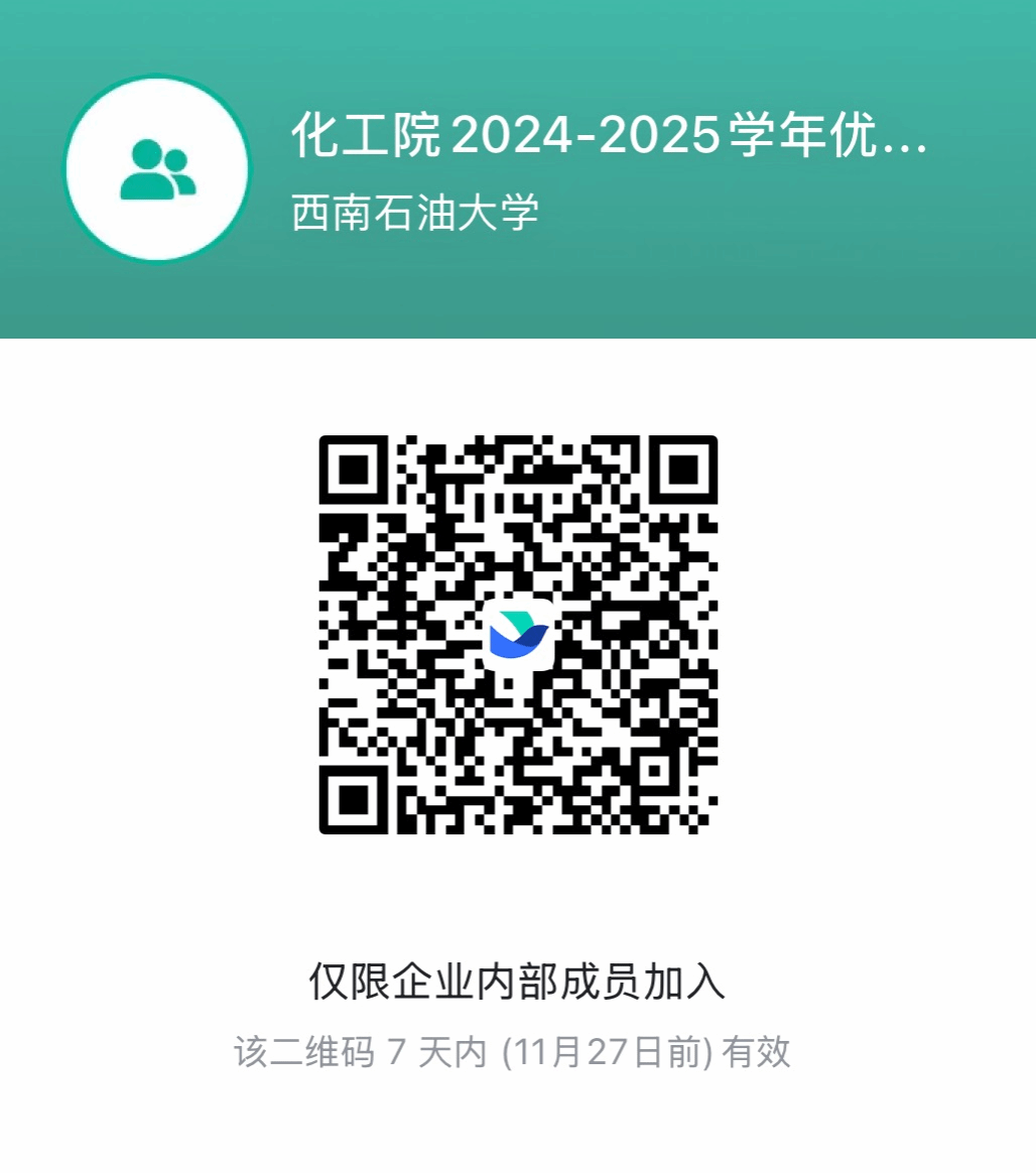为全面落实立德树人根本任务,充分发挥先进典型示范引领作用,按照学校关于开展2024-2025学年学生先进个人和先进集体评选工作的相关要求,依据《西南石油大学学生先进个人和先进集体评选表彰办法》(2025年修订),现开展化学化工学院2024-2025学年优秀学生标兵评选工作。 (一)评选范围:从当学年已获推参评“优秀学生”的学生中产生。 (二)参评条件: 1.政治素质过硬,道德品质高尚,在个人发展和班风学风建设、学生社区建设、集体事务中综合表现突出,能够在学生群体中起到良好的引领示范作用。 2.学业成绩优异,本科生参评学年学分绩点及综合素质测评排名均位于专业年级前5%,研究生参评学年综合素质测评排名位于专业年级前5%。 3.参评学年,满足上述条件的同时须符合以下条件之一: (1)在国际级大学生学科竞赛或科技竞赛(含个人项目和集体项目)中,获奖排名前二(以获奖证书排名为准)或获得二等奖及以上奖励。 (2)在国家级大学生学科竞赛、科技竞赛或与学生发展密切相关的重大活动中,个人项目获得第二名(或二等奖)及以上奖励,或者为获得第一名(或一等奖)及以上集体项目的主力队员前两名(以获奖证书排名为准),或者为获得第二名(或二等奖)集体项目的负责人(排名第一,以获奖证书排名为准)。 (3)在省级大学生学科竞赛、科技竞赛或与学生发展密切相关的重大活动中,个人项目获得第一名(或一等奖),或者为获得第一名(或一等奖)集体项目的负责人(排名第一,以获奖证书排名为准)。 (4)以第一作者(或教师第一、学生第二)发表与本学科密切相关的高水平论文。 (5)以第一发明人(或教师第一、学生第二) 获得与本学科密切相关的发明专利授权。 (6)获学生“飞翔奖”或省级及以上等具有重大影响的荣誉称号。 符合参评条件且报名参加评选的同学请提前准备答辩ppt,ppt内容应包括个人基本信息及学业情况,在校期间取得的主要成绩、奖学金及荣誉、学科竞赛获奖、学术科研成果、文体活动、社会实践与公益服务情况等,答辩时间每个人不超过5分钟。预计下周开展院内评选答辩,请提前扫码加入飞书群,后续群内通知答辩时间和地点。