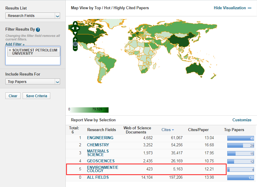 【喜报】我院环境/生态学科进入ESI全球排名前1% 录入时间:2024-11-16 09:39 作者:李晶晶 编辑:程美容 审核:张辉 浏览量:人次 2024年11月14日,科睿唯安(Clarivate)发布了最新一期(2024年11月)《基本科学指标数据库》(Essential Science Indicators,简称ESI)统计数据,我院环境/生态(environment/ecology)学科首次进入ESI全球排名前1%,在统计期内,在环境/生态学科共发表SCIE/SSCI论文423篇,总被引频次5163次,篇均被引12.21次,实现了历史性突破。 环境/生态学科是我院继化学学科后,第二个进入ESI前1%的学科,至此,我校共有5个学科进入国际高水平行列,我院占两席。
