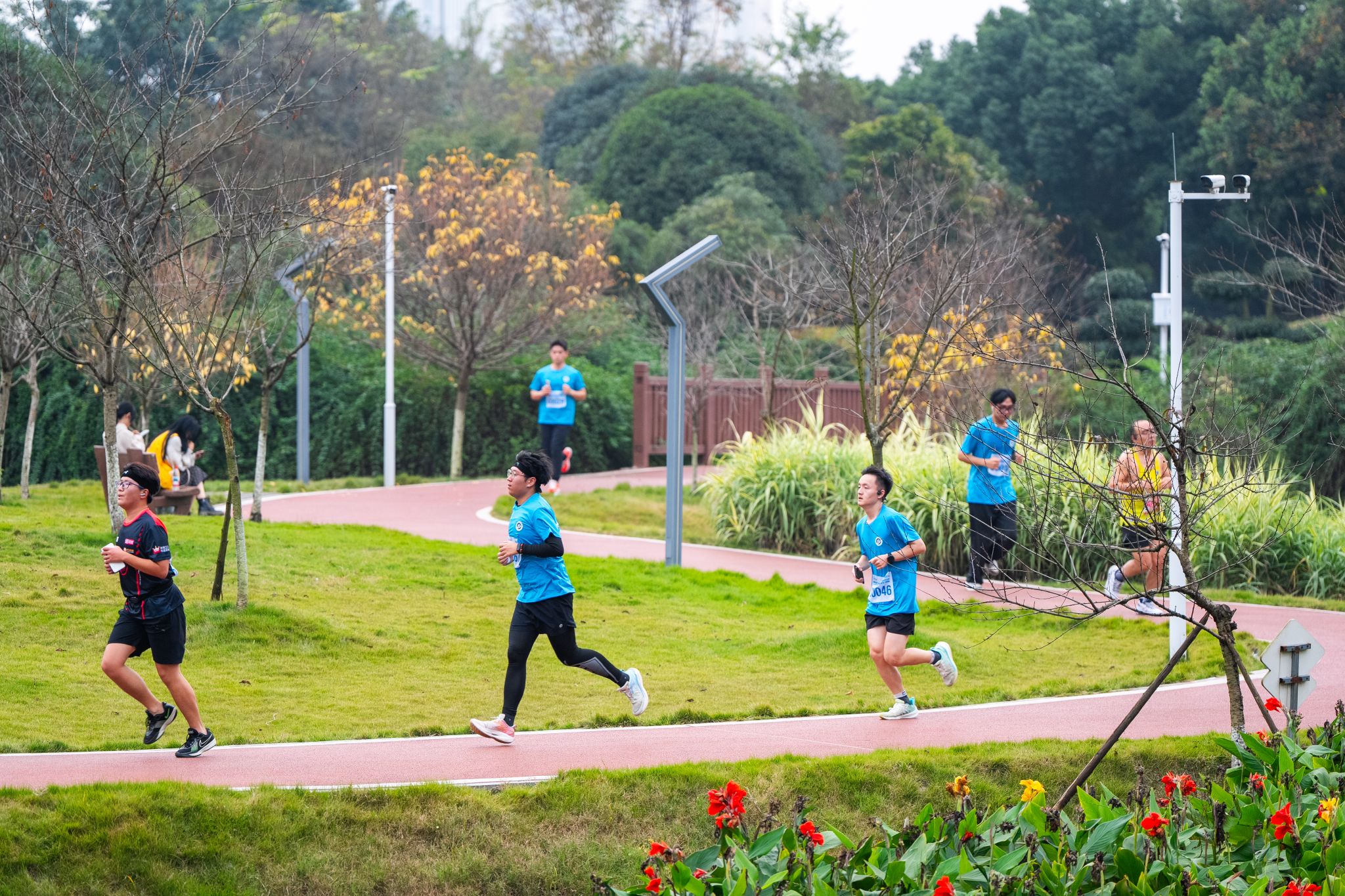成都校区的比赛设置5公里与10公里两项赛程。参赛选手从创业广场出发,沿博学路、为学路奔跑,途经思学楼、博学广场、石油魂雕像、梦溪湖等校园标志性建筑,跑者们在奔跑中沉浸式感受这所能源高校的精神底蕴。