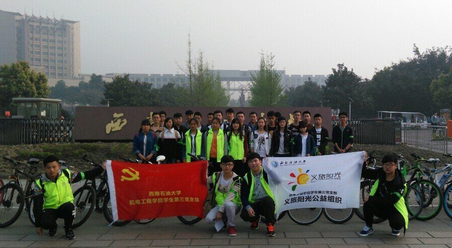 义旅阳光协会成立于2013年,是一个以环境保护、传递爱心为宗旨的公益组织,现有注册会员数百名,分布于各个学院。协会重视培养会员对公益事业的热情和社会责任感,经常开展校园公益活动,在每年暑假都会有社会实践队前往贫困山区,为那里的老人与孩子献出自己的爱心。